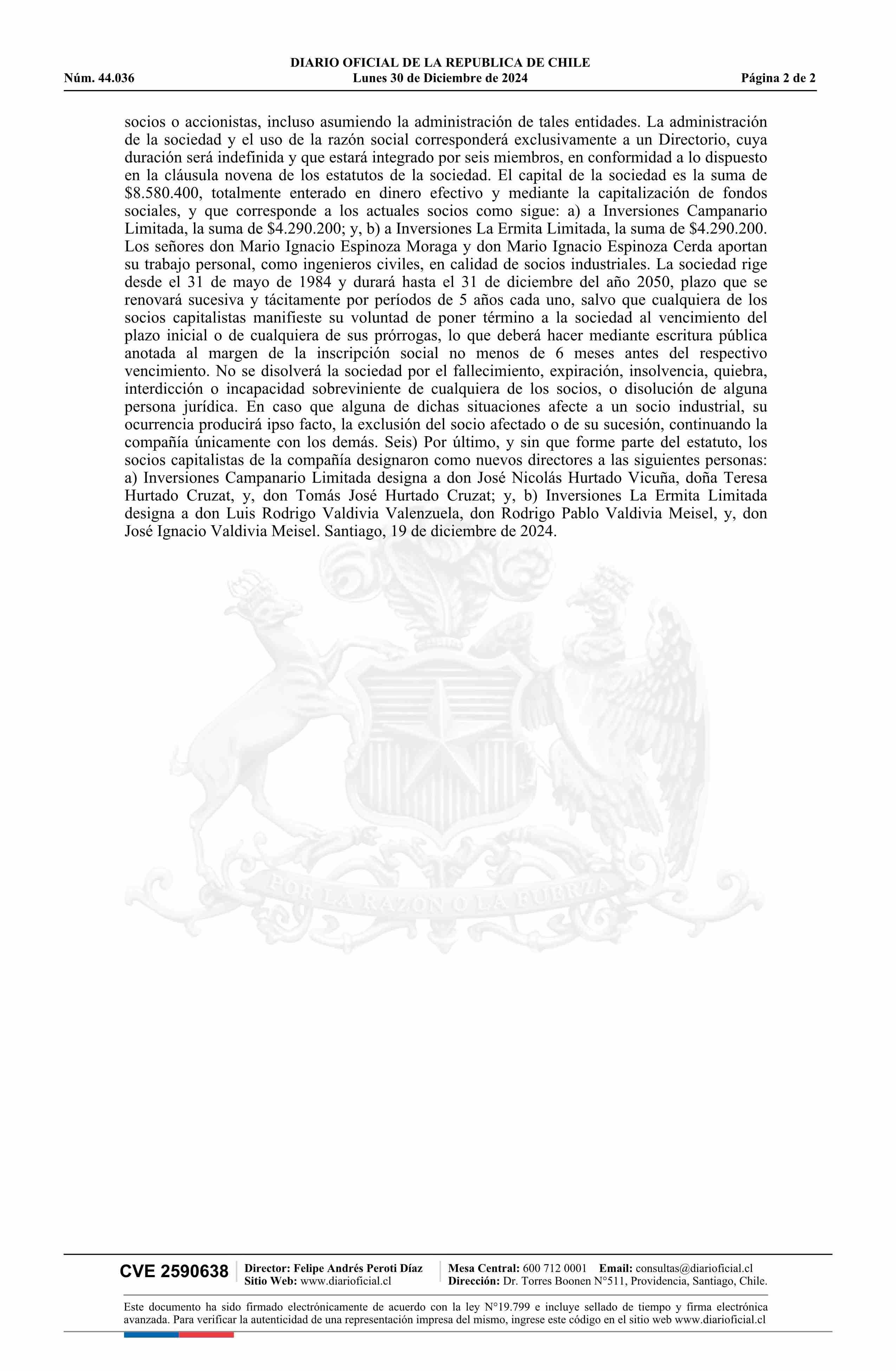 Constructora Ignacio Hurtado Limitada 95.700.000-2 30-12-2024 Diario Oficial Edición Electrónica |