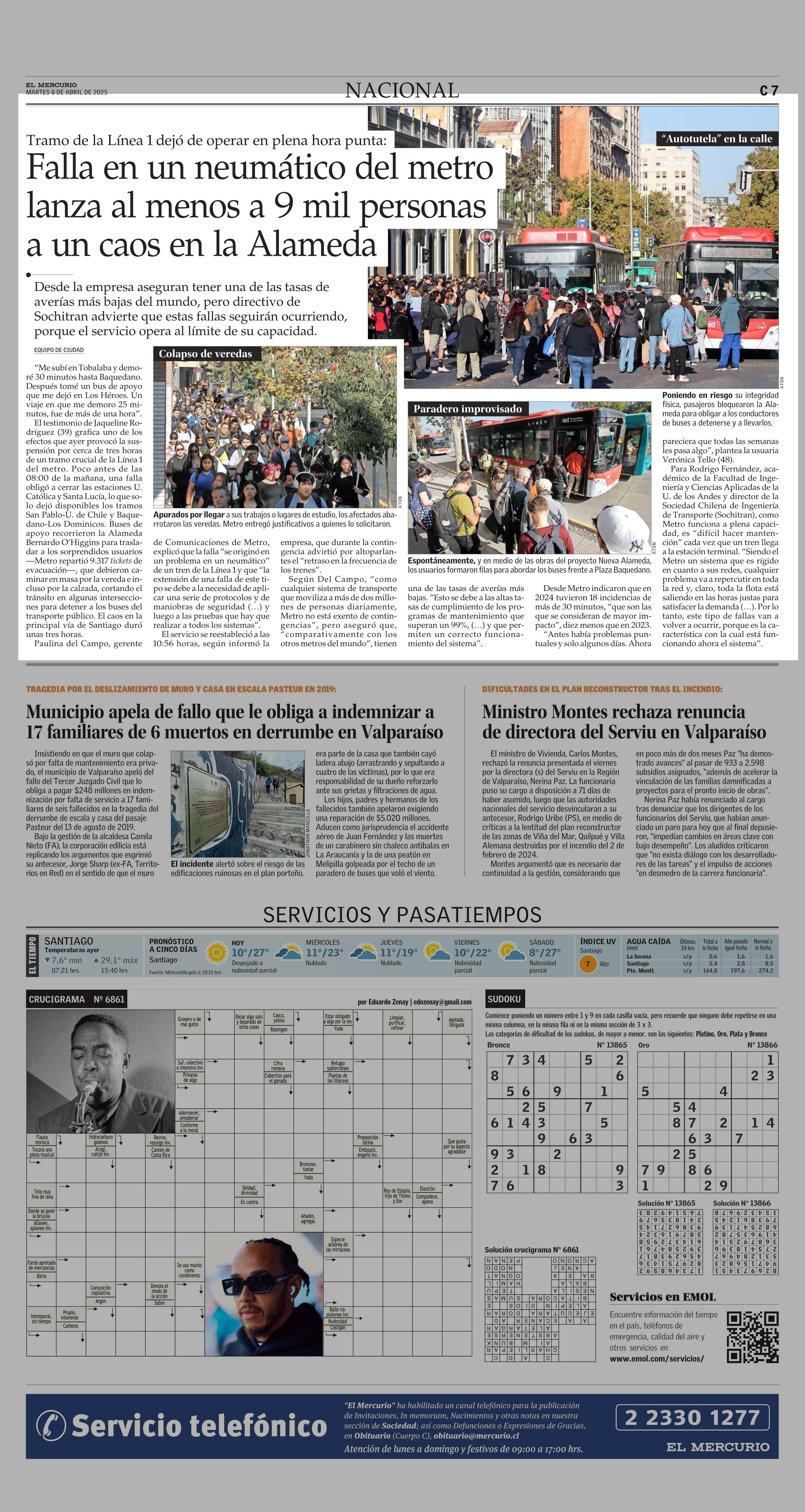 Falla en un neumático del metro lanza al menos a 9 mil personas a un caos en la Alameda 08-04-2025 El Mercurio |
