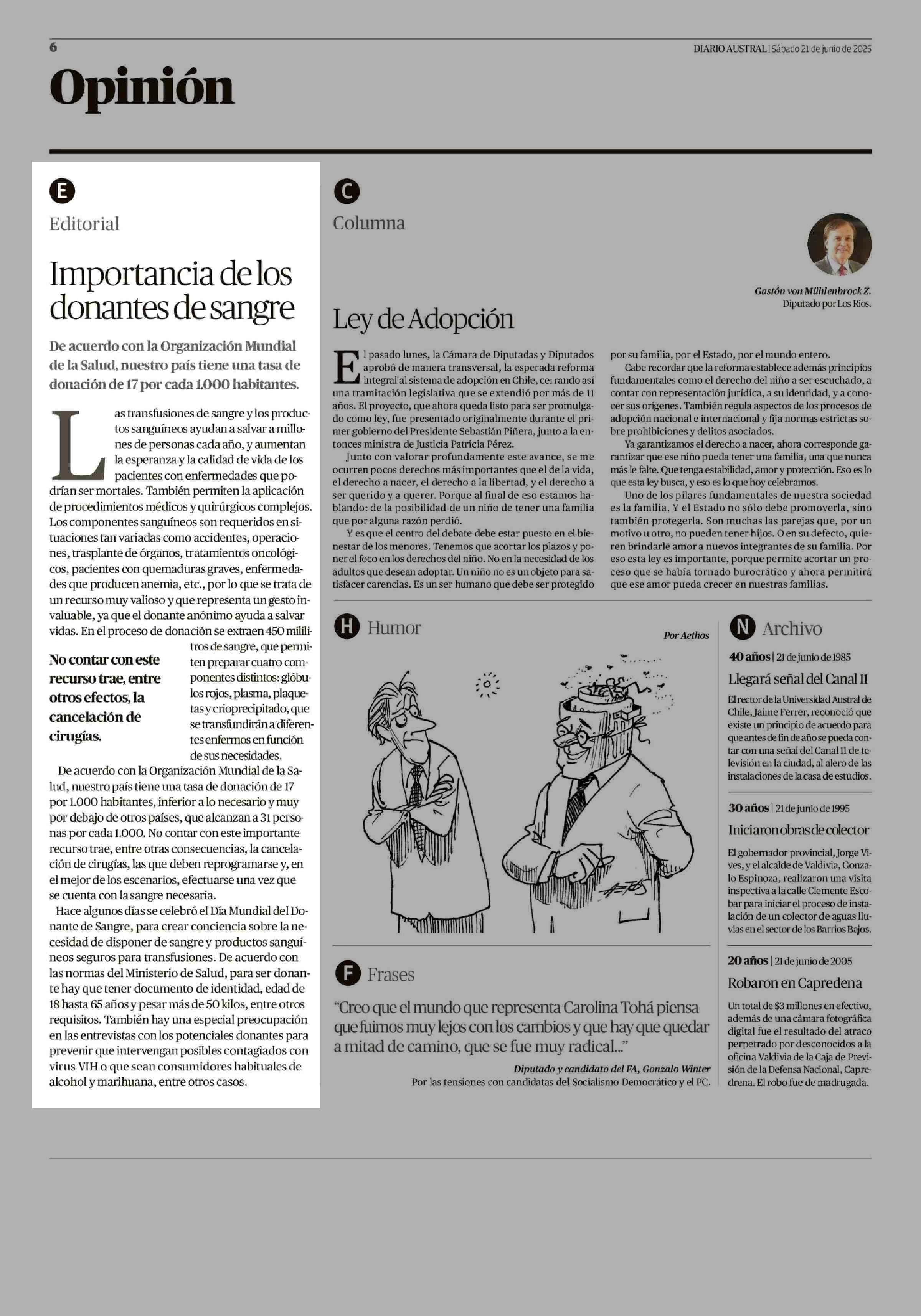 Fecha: 21-06-2025 Sector: Editorial Región: Región de Los Ríos