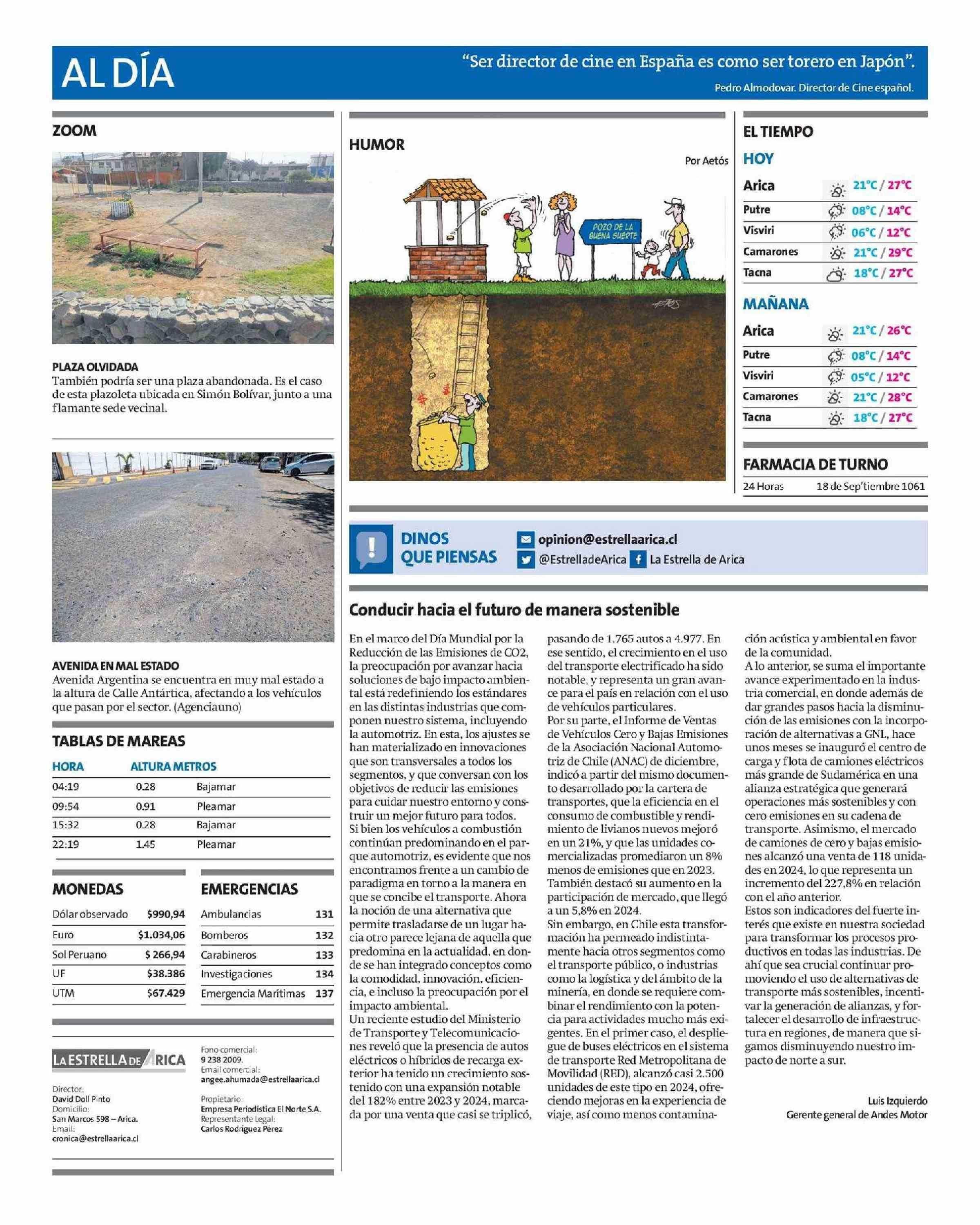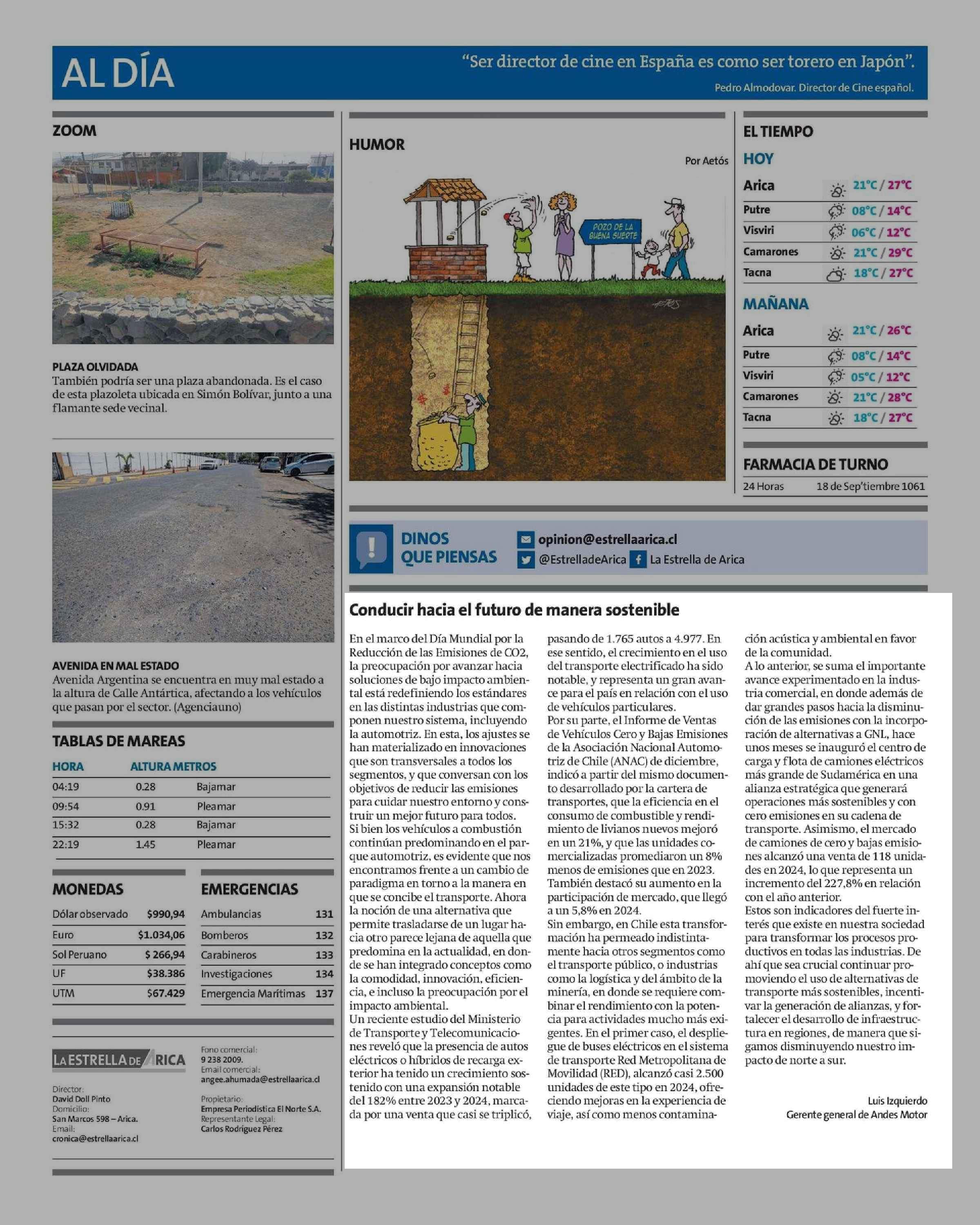 Conducir hacia el futuro de manera sostenible 30-01-2025 La Estrella de Arica |