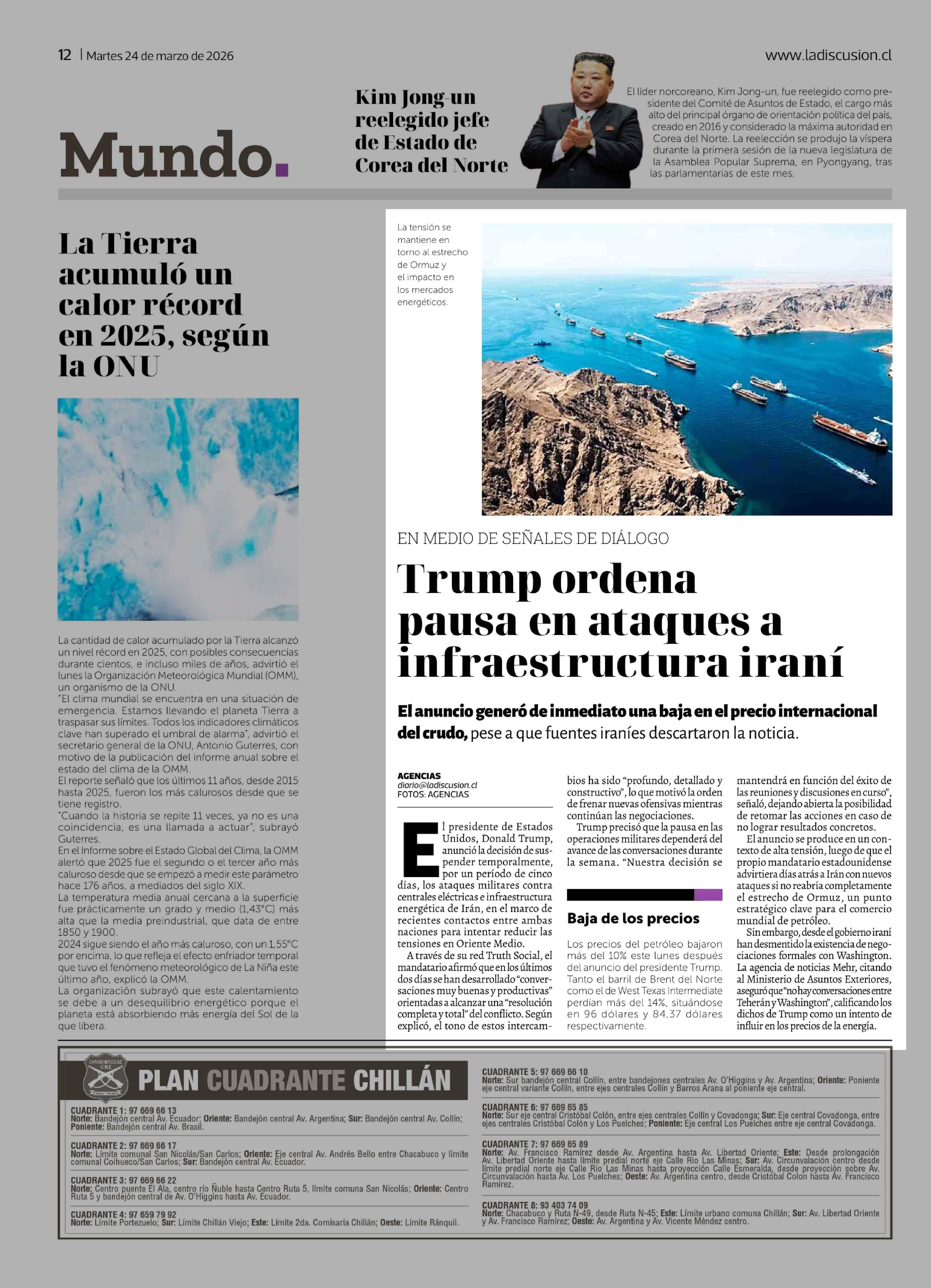Trump ordena pausa en ataques a infraestructura iraní 24-03-2026 La Discusión |