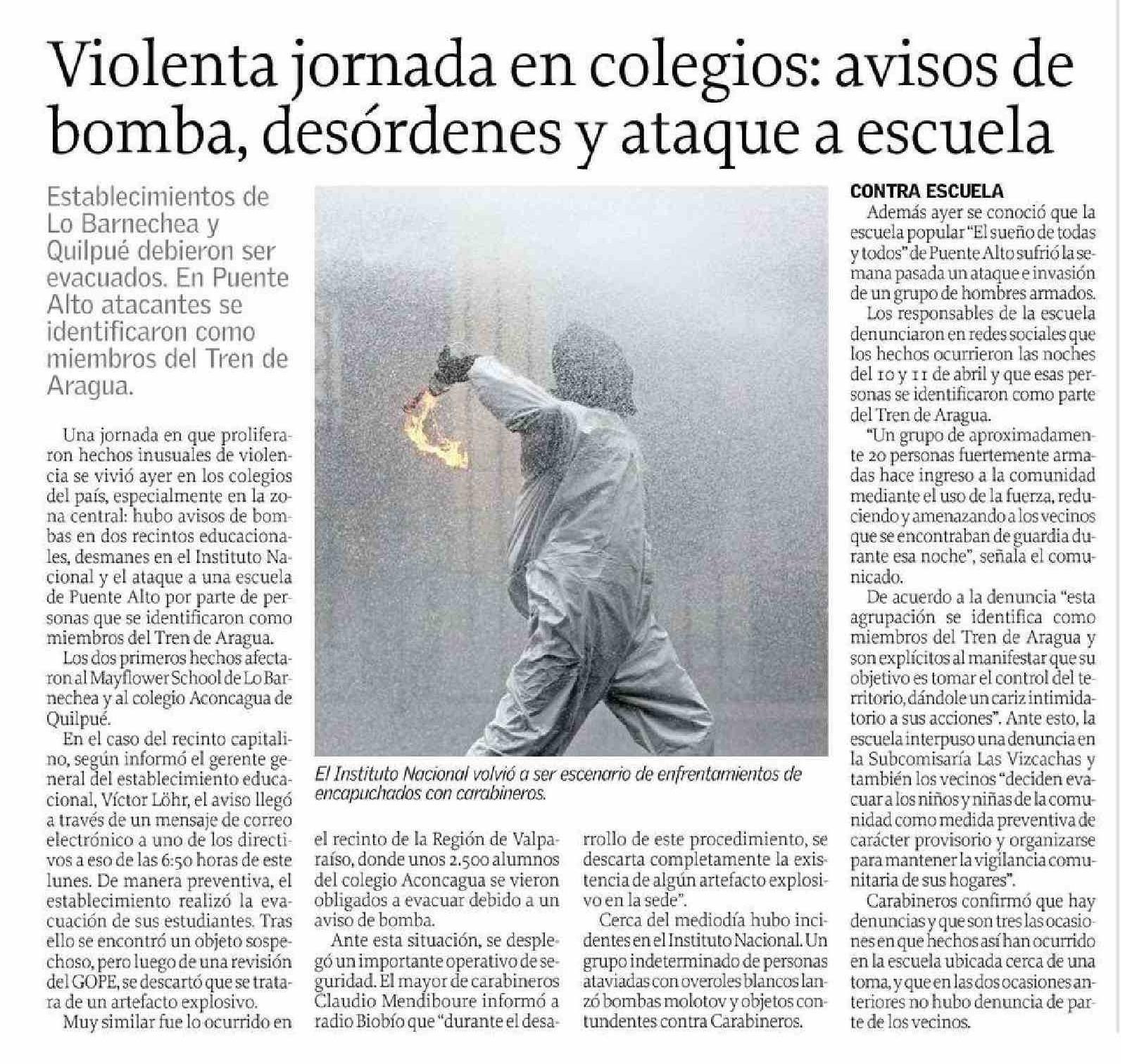 | Título: | Violenta jornada en colegios: avisos de bomba, desórdenes y ataque a escuela |