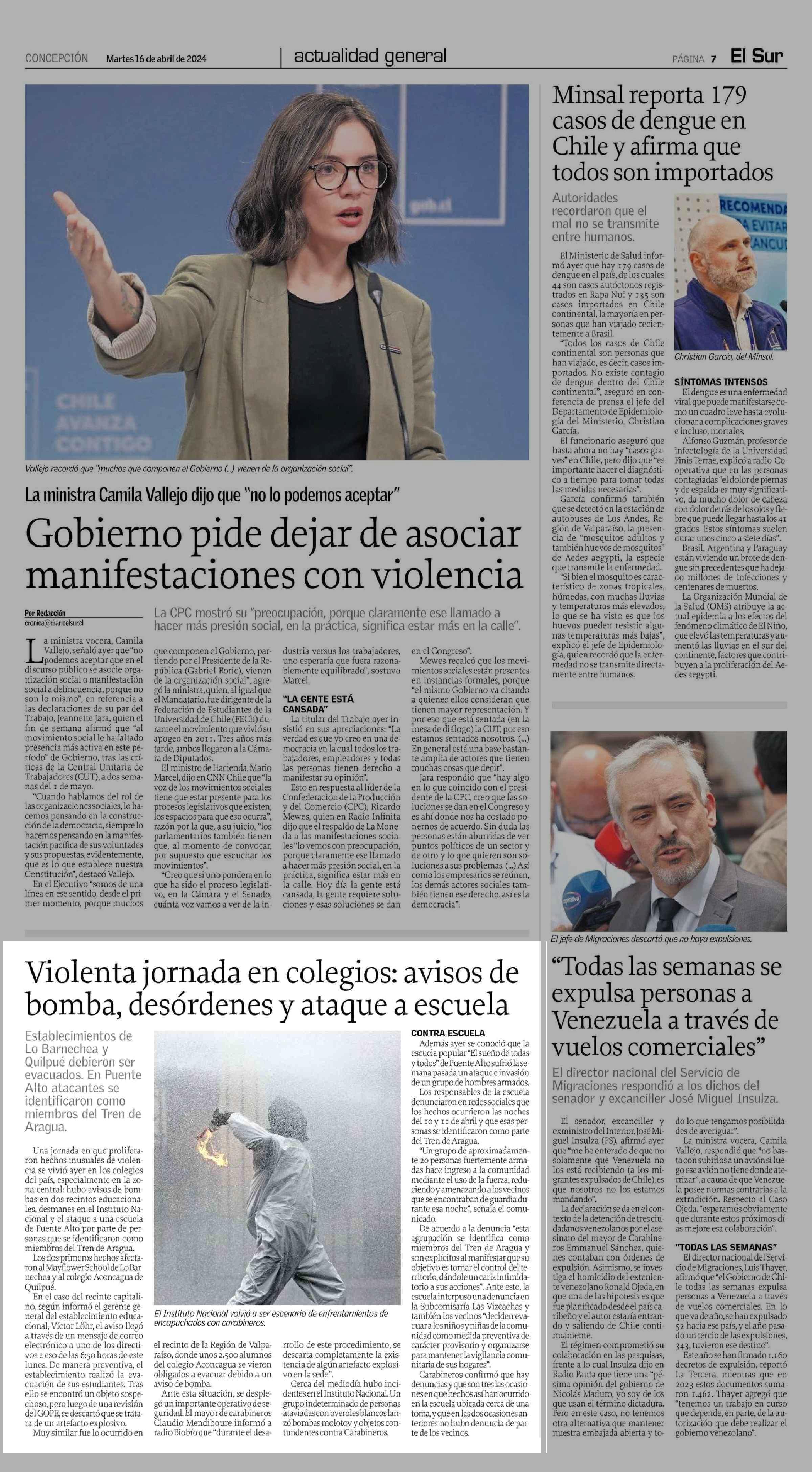 Violenta jornada en colegios: avisos de bomba, desórdenes y ataque a escuela 16-04-2024 El Sur |