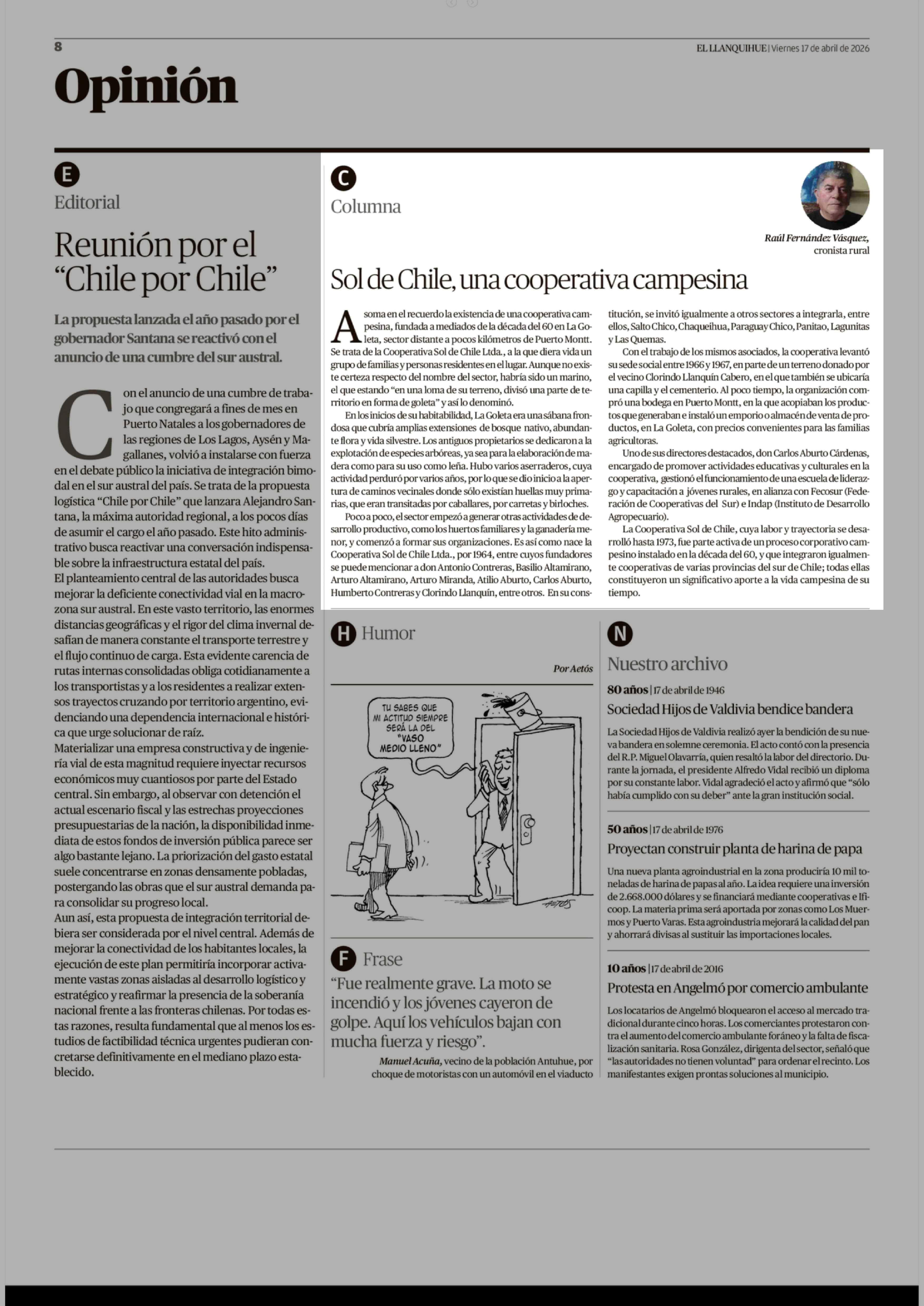 Fecha: 17-04-2026 Sector: Columnas de Opinión Región: Región de Los Lagos