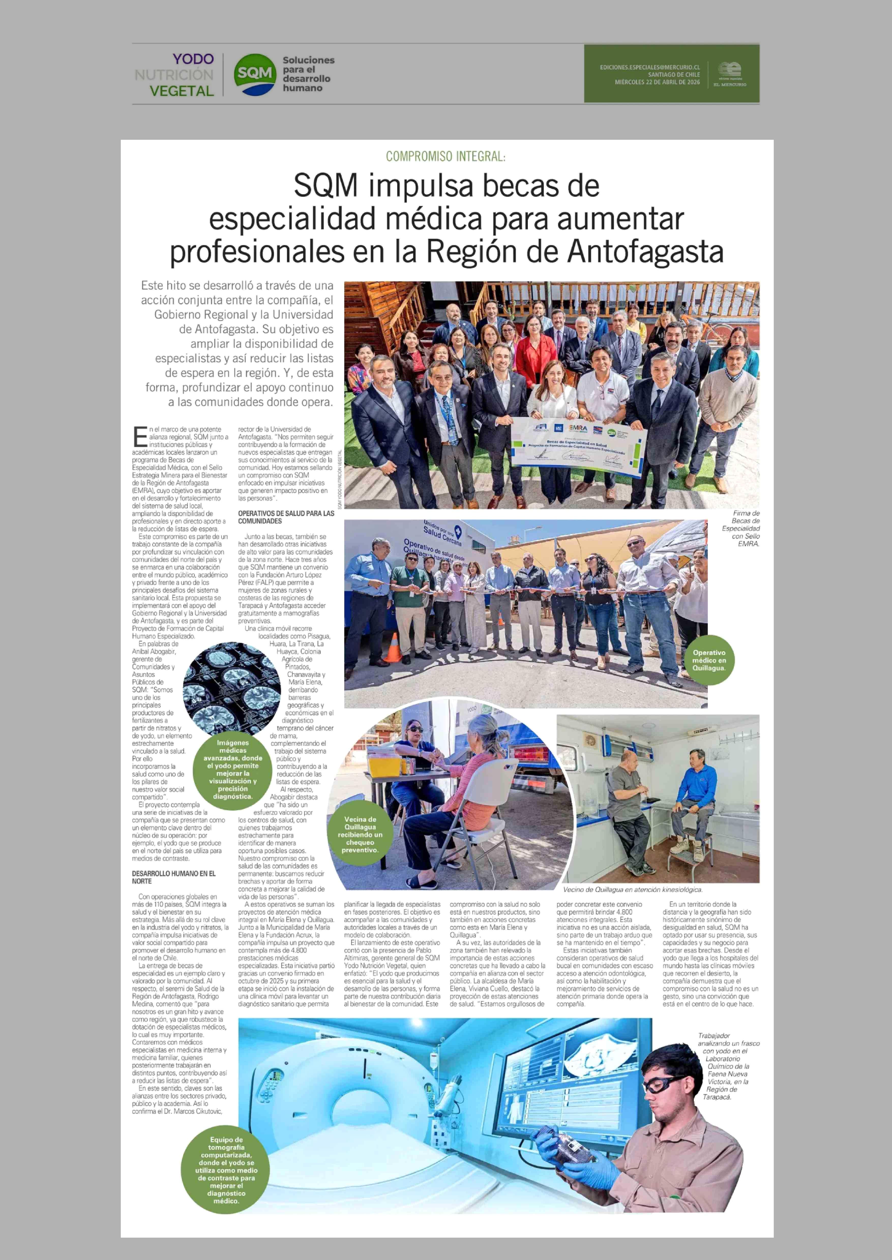Título: SQM impulsa becas de especialidad médica para aumentar profesionales en la Región de Antofagasta