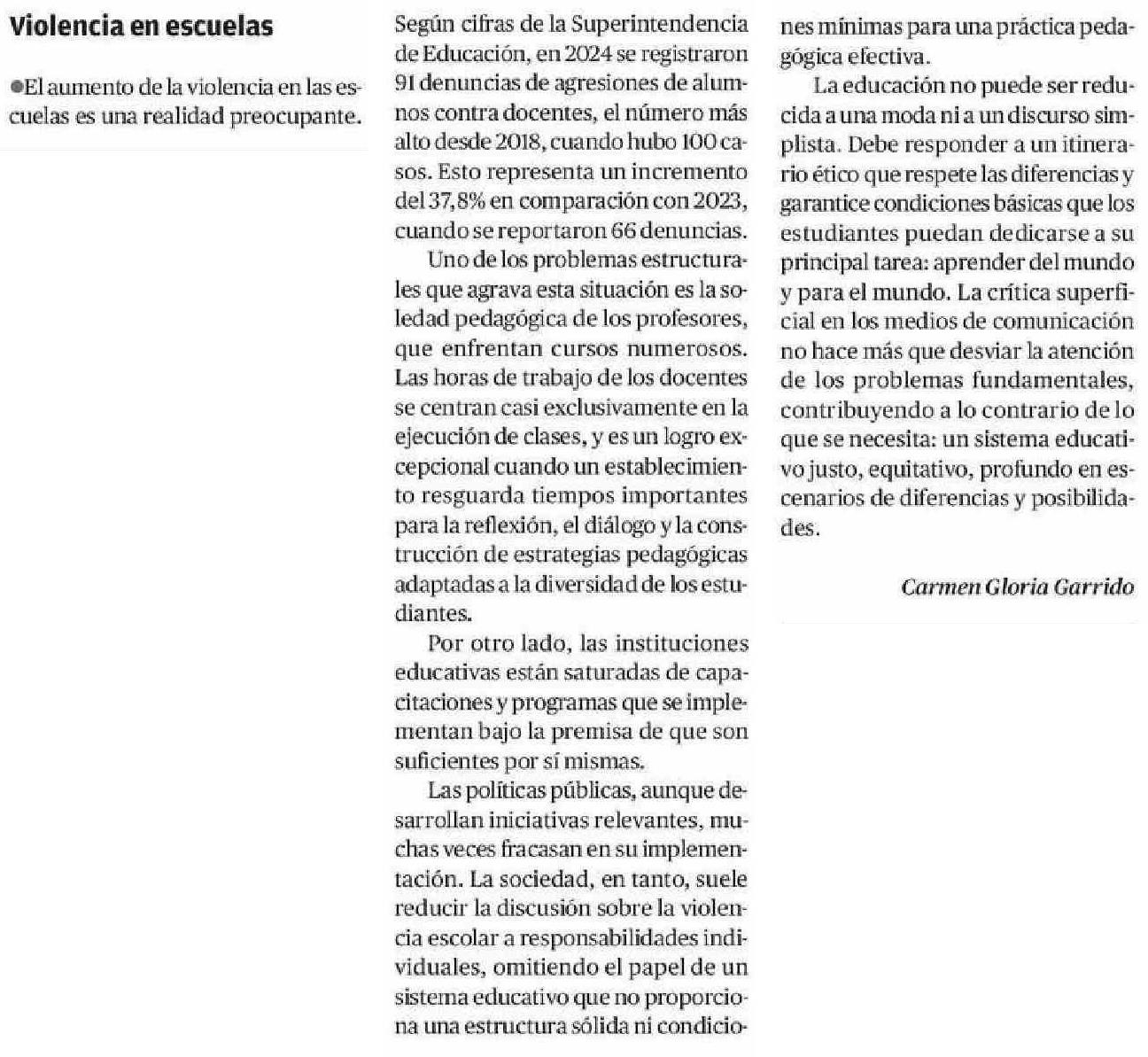 Violencia en escuelas 03-04-2025 El Mercurio de Calama |