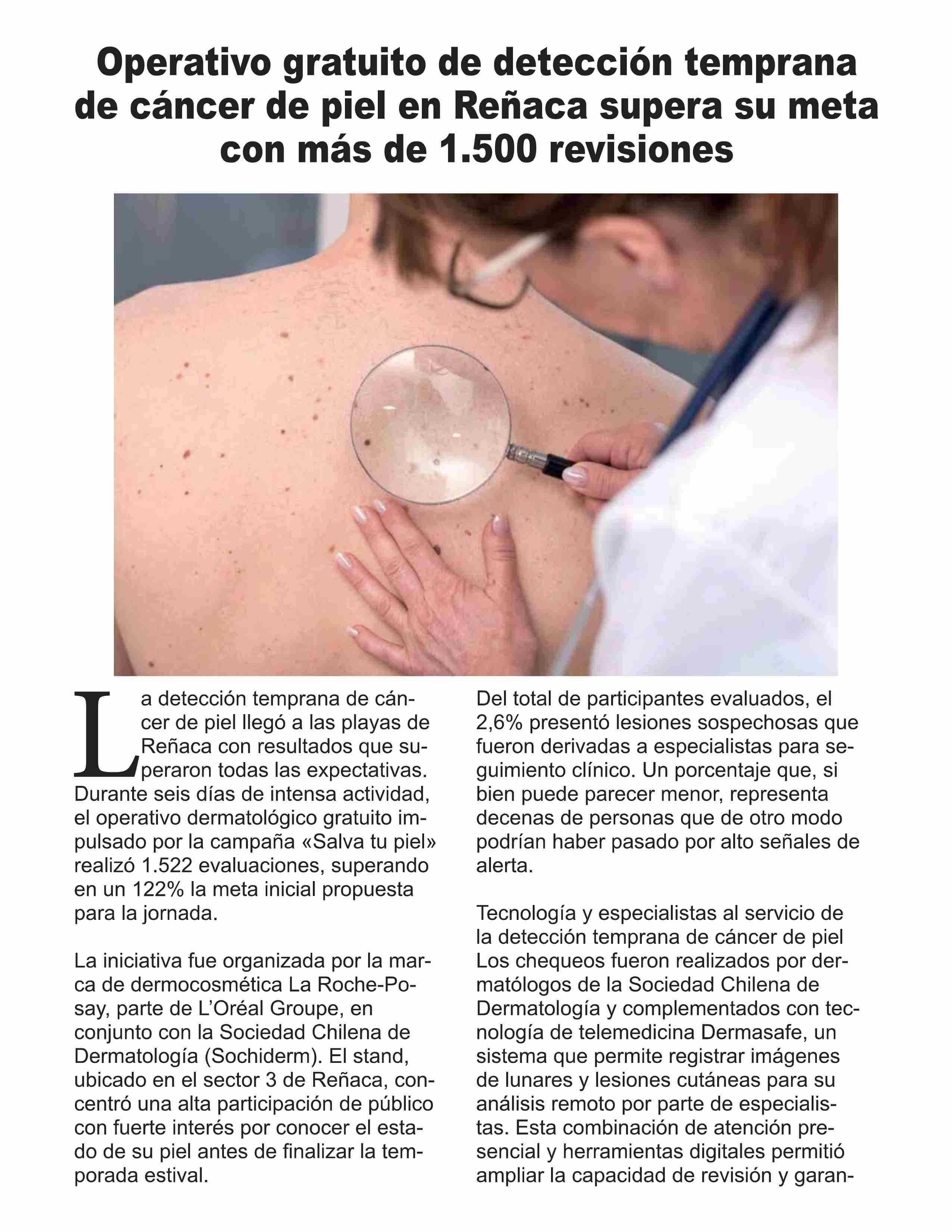 Título: Operativo gratuito de detección temprana de cáncer de piel en Reñaca supera su meta con más de 1.500 revisiones