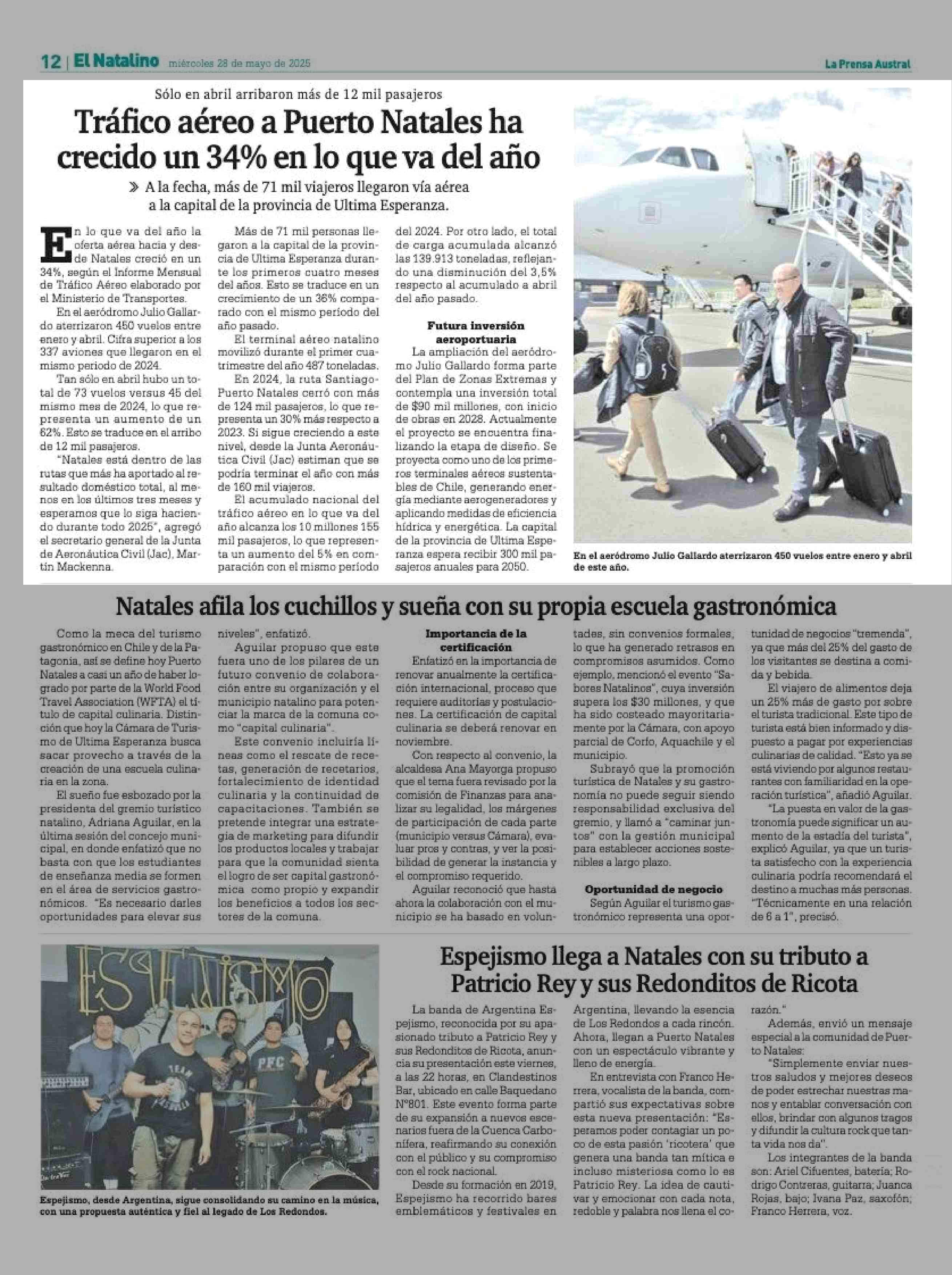 Tráfico aéreo a Puerto Natales ha crecido un 34% en lo que va del año 28-05-2025 La Prensa Austral |