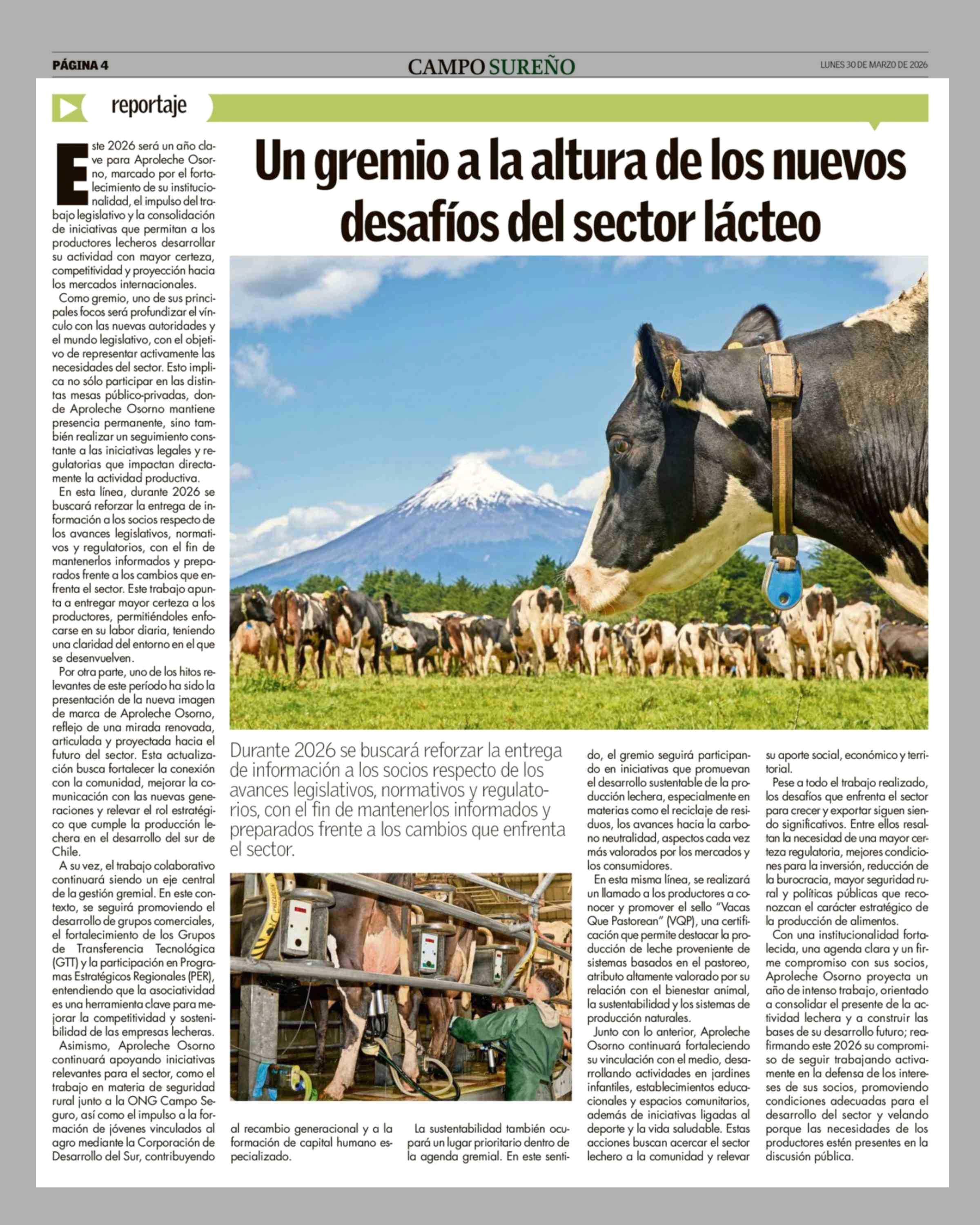 Un gremio a la altura de los nuevos desafíos del sector lácteo 30-03-2026 Campo Sureño - Regiones IX, X y XIV |