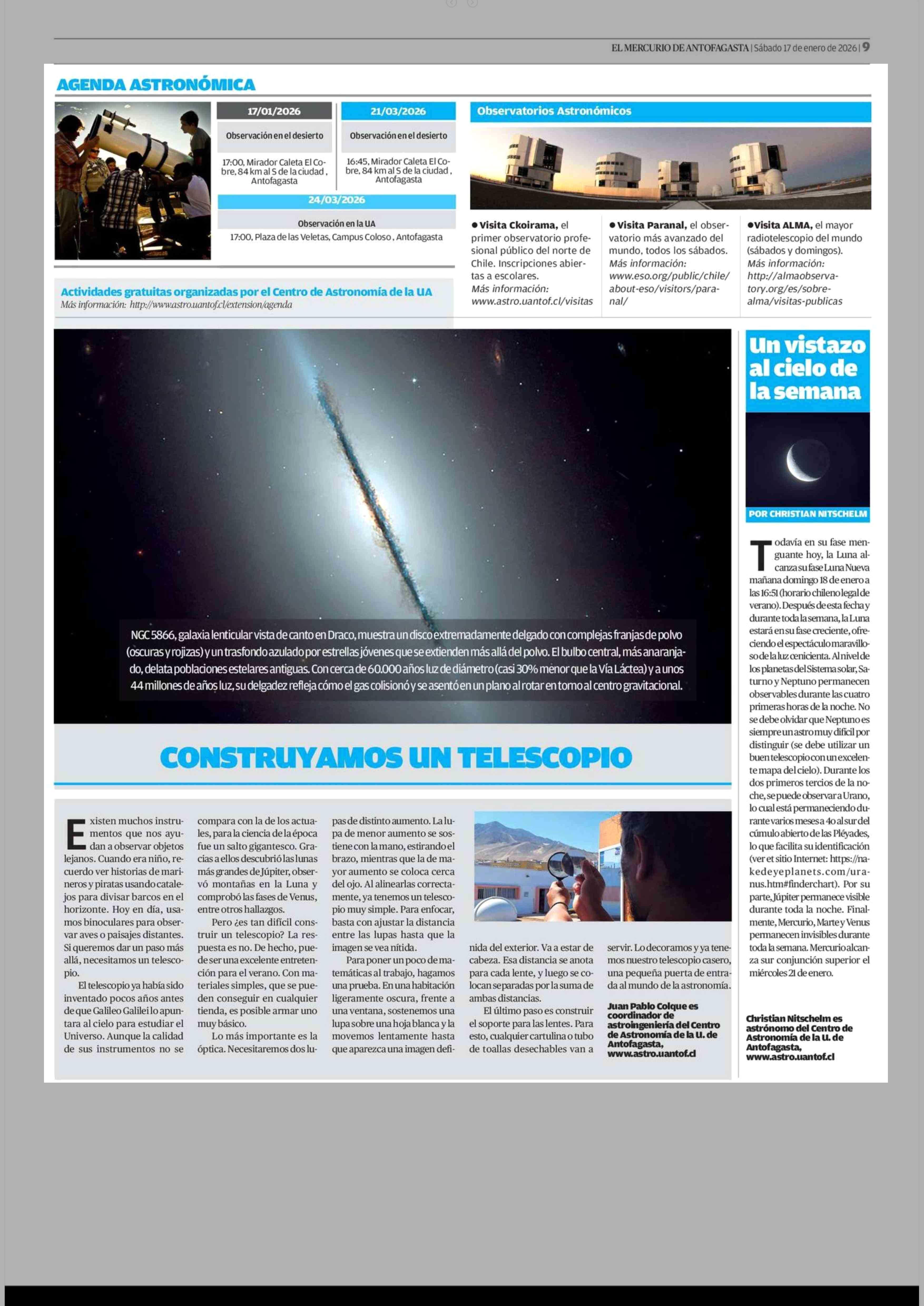 AGENDA ASTRONÓMICA 17-01-2026 El Mercurio de Antofagasta |