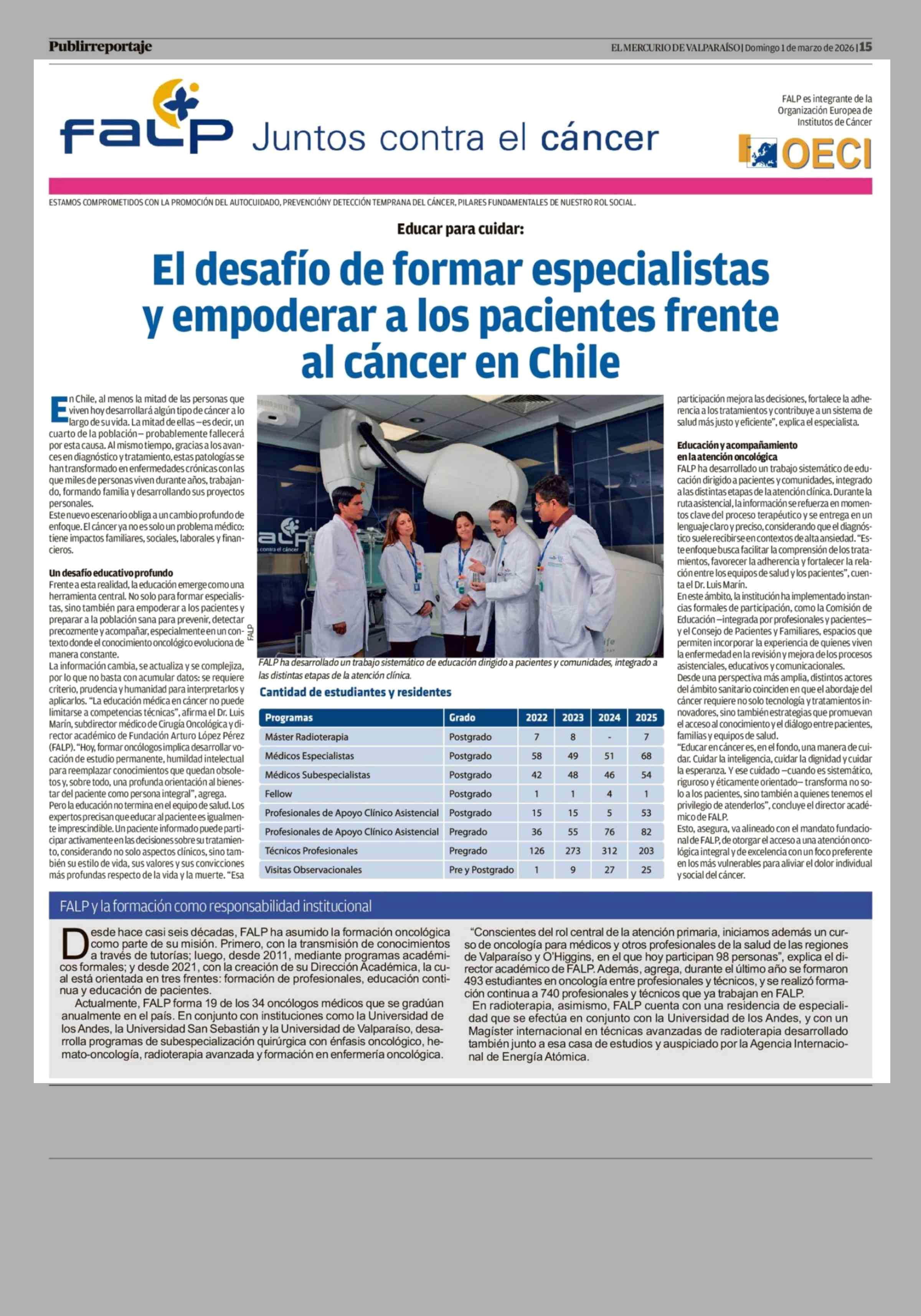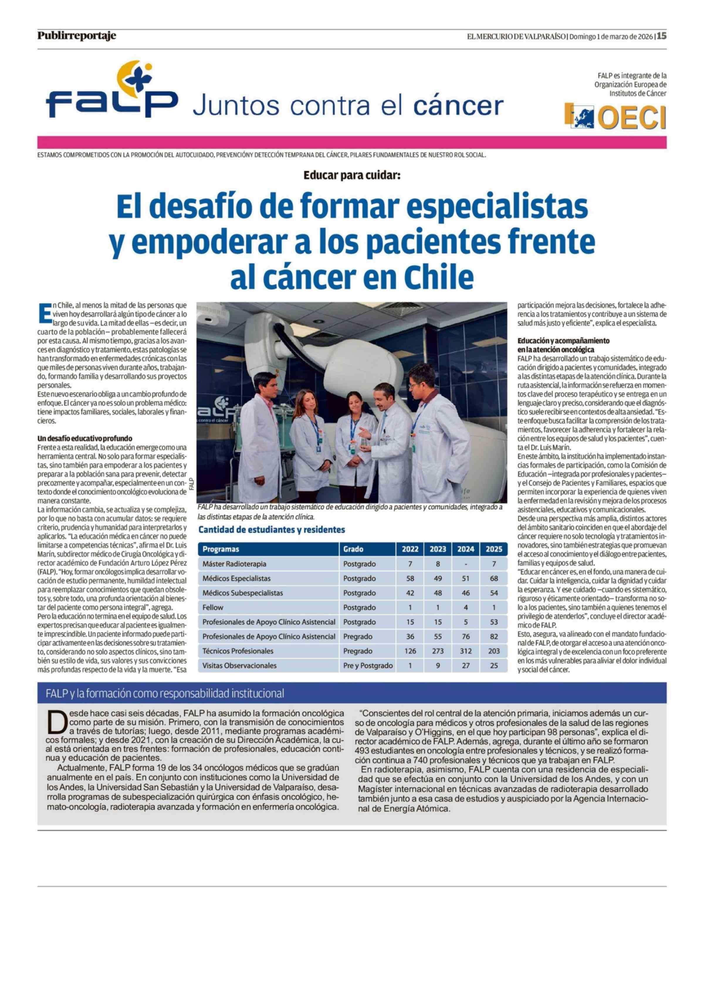 El desafío de formar especialistas y empoderar a los pacientes frente al cáncer en Chile 01-03-2026 El Mercurio de Valparaíso |