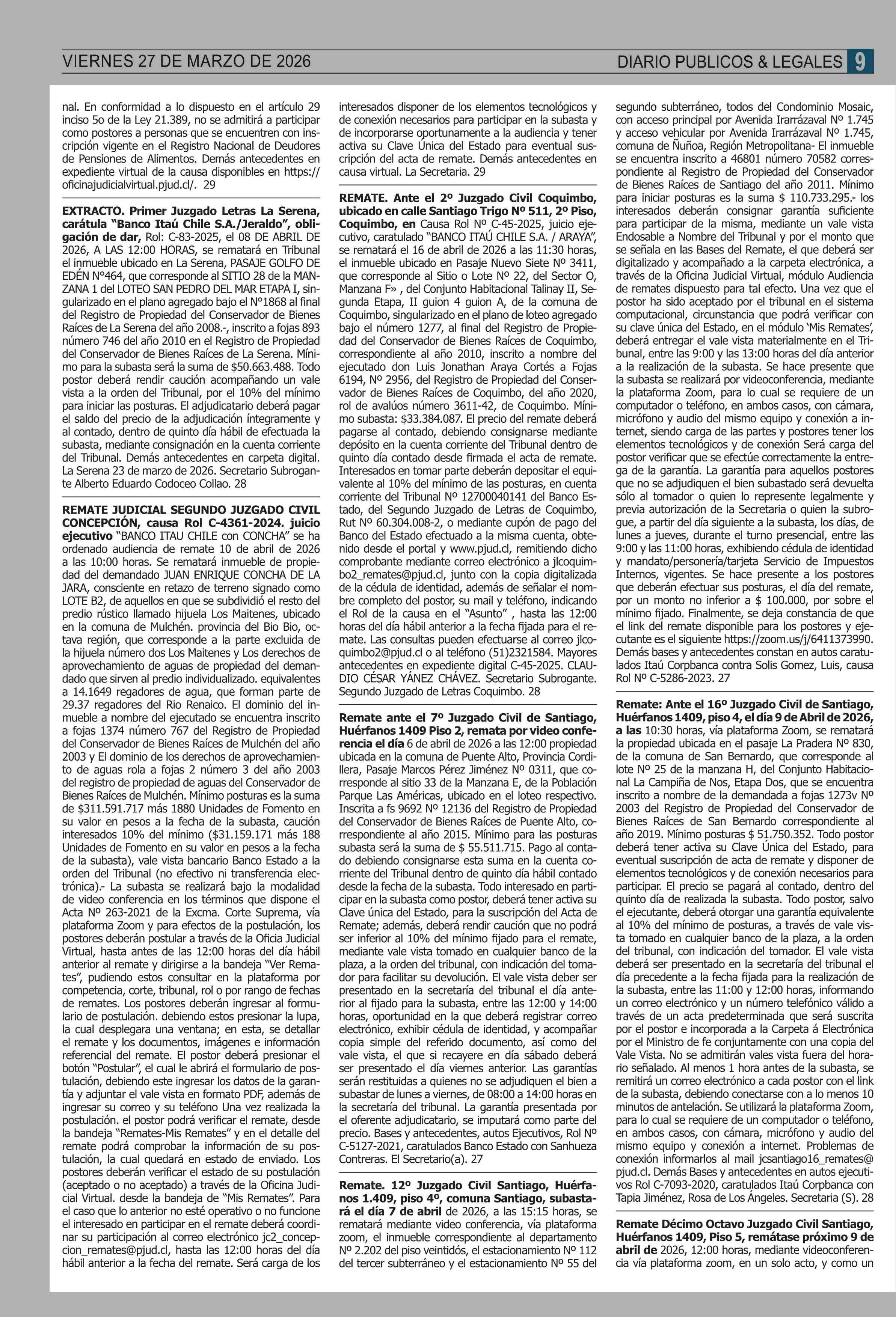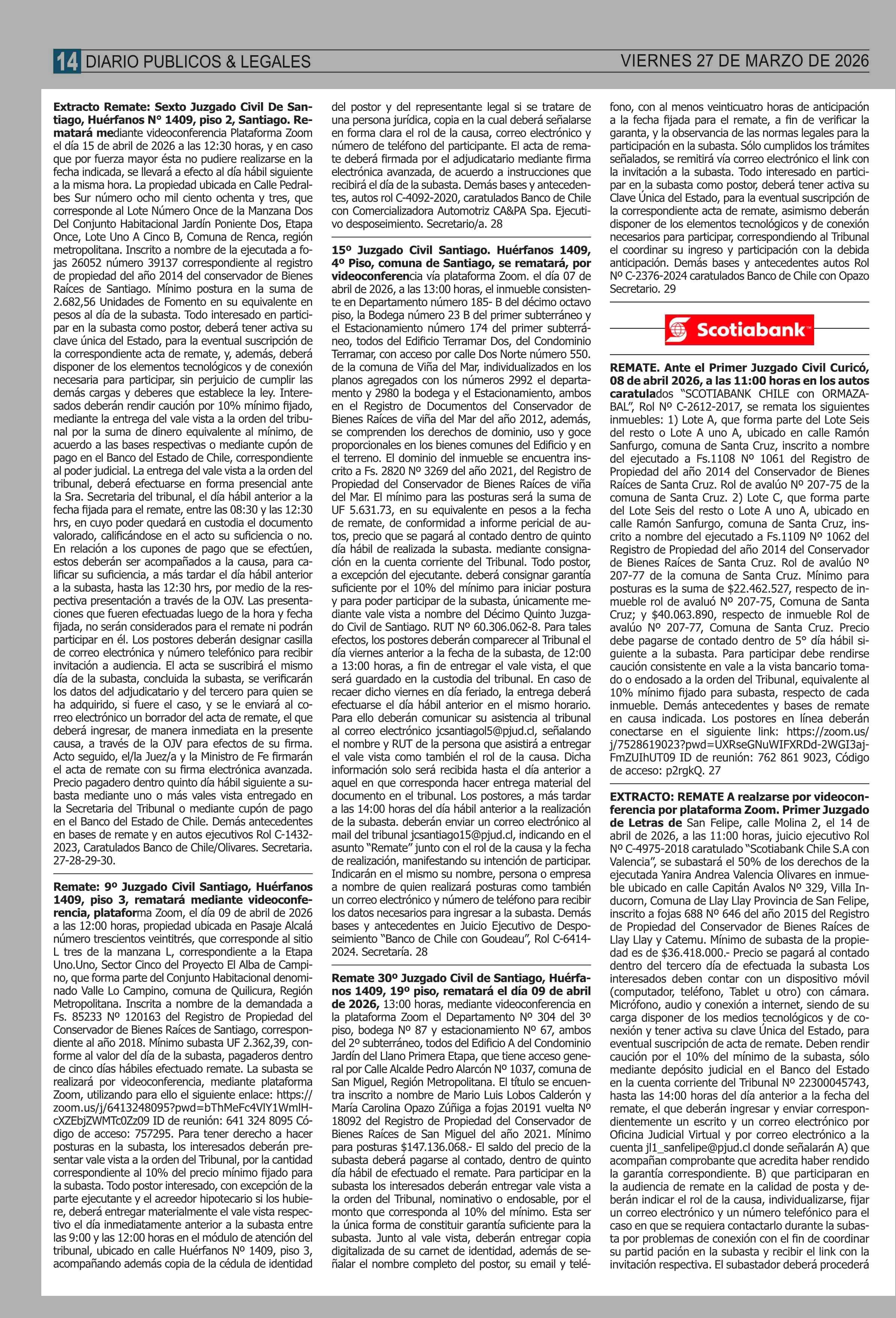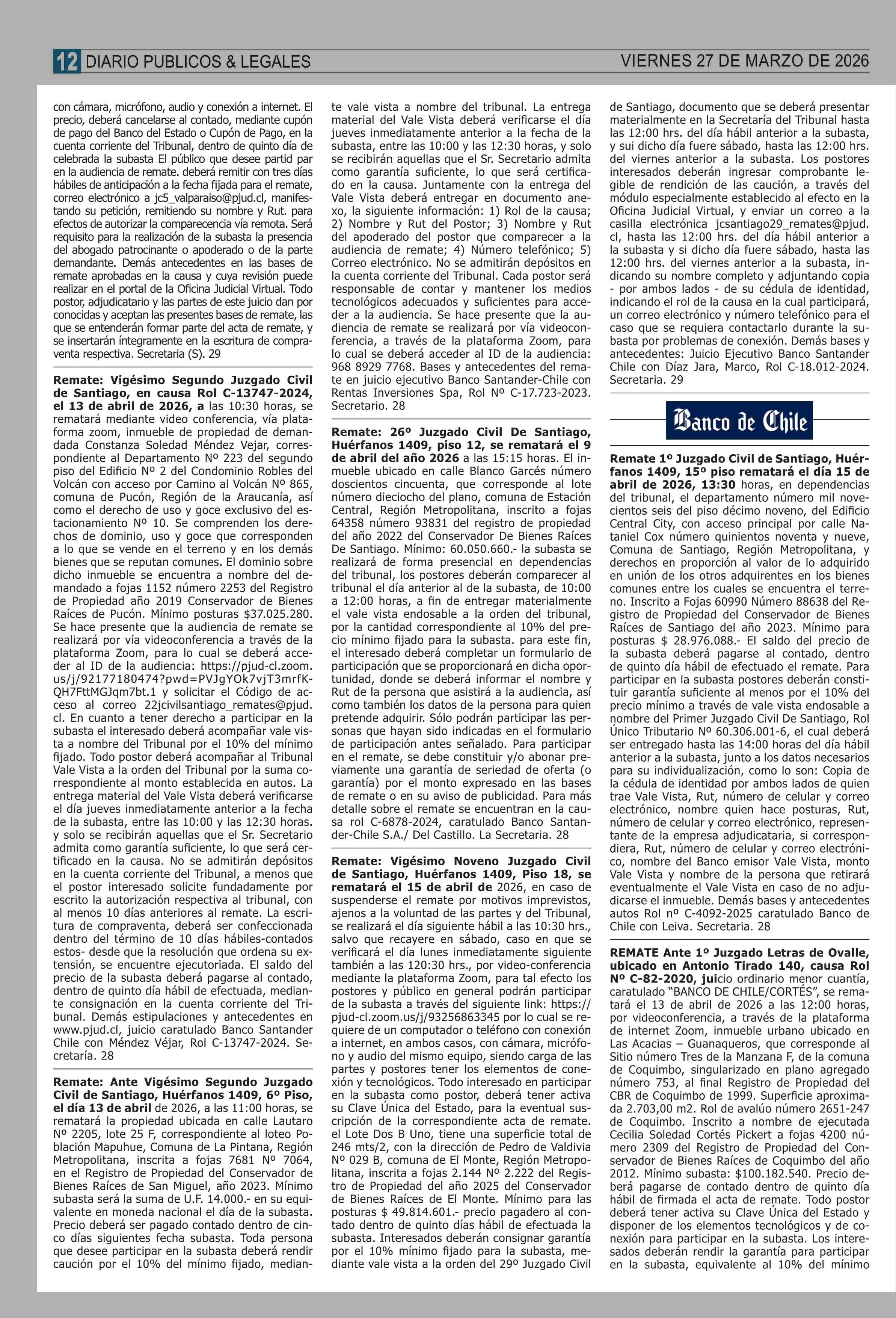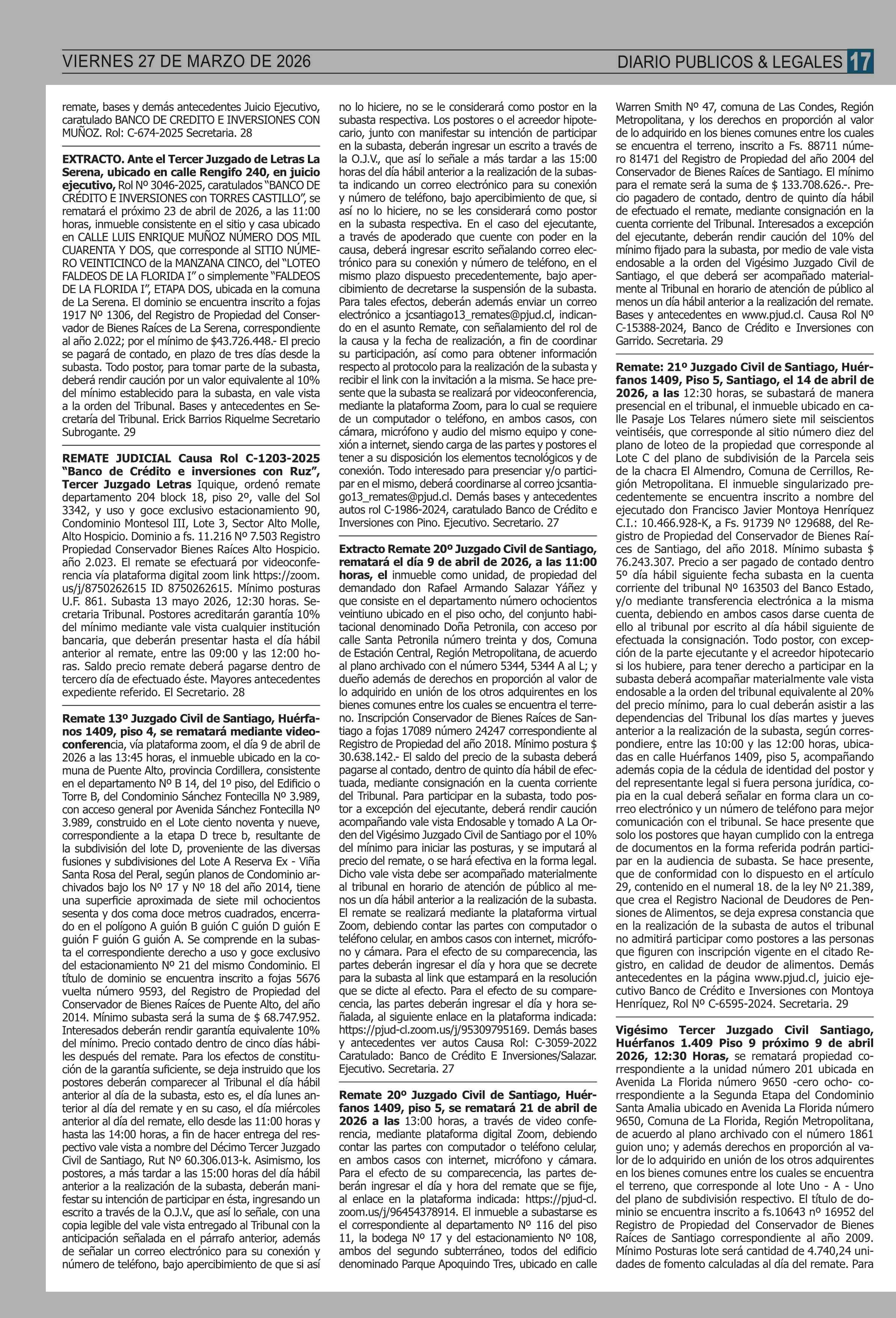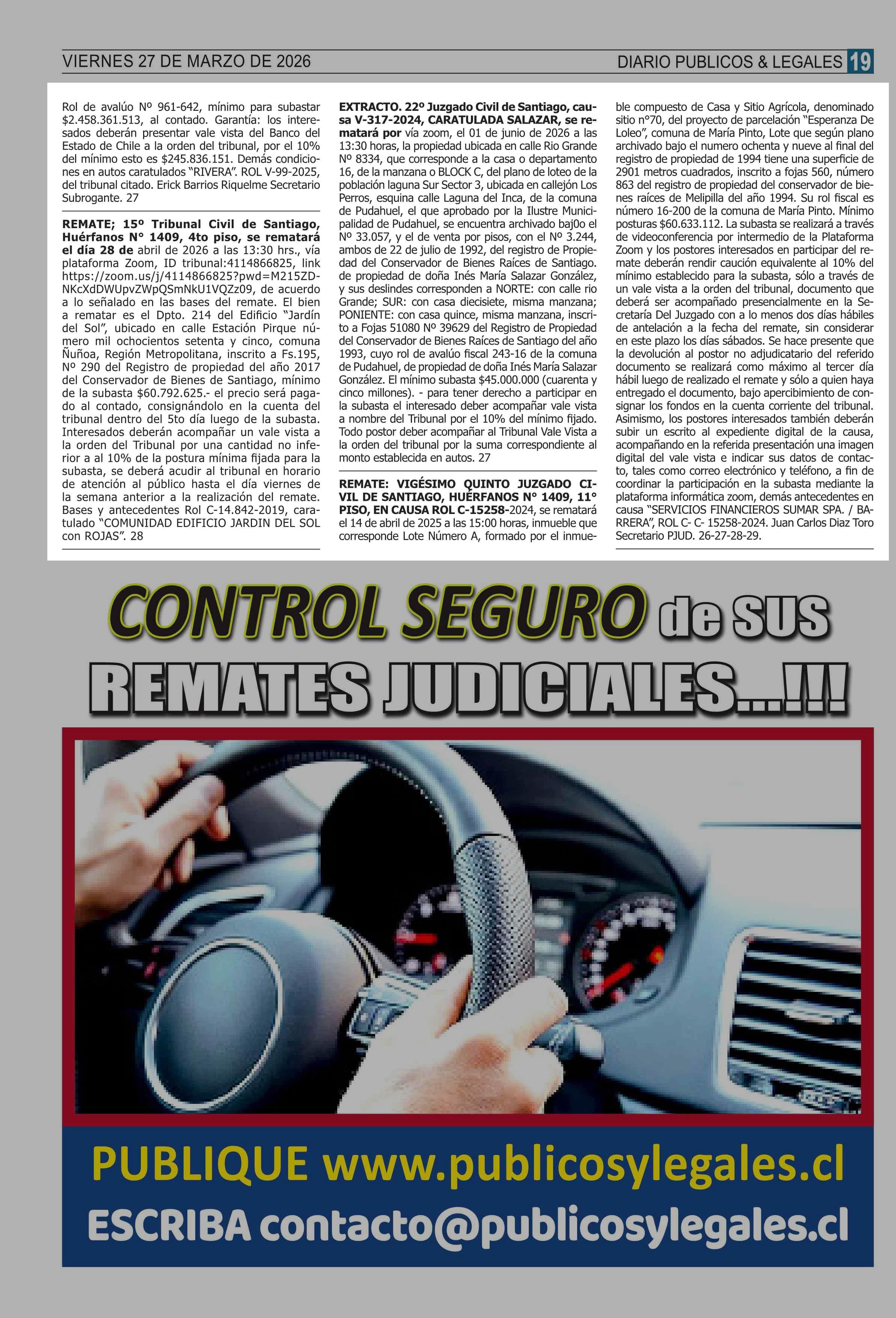 | Fecha: | 27-03-2026 | Sector: | Remates | Región: | Región Metropolitana de Santiago |