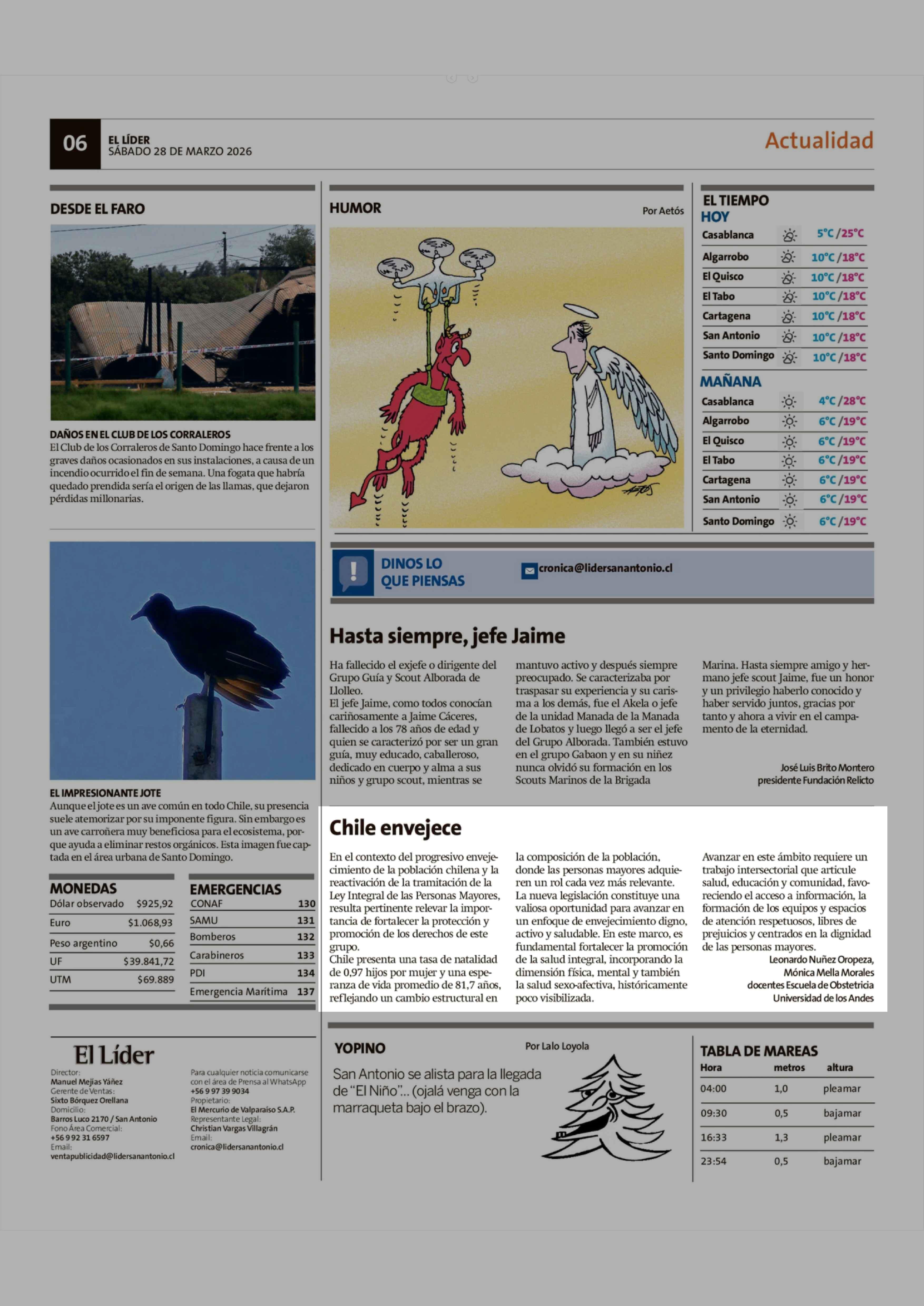 Cartas: Chile envejece 28-03-2026 El Líder |