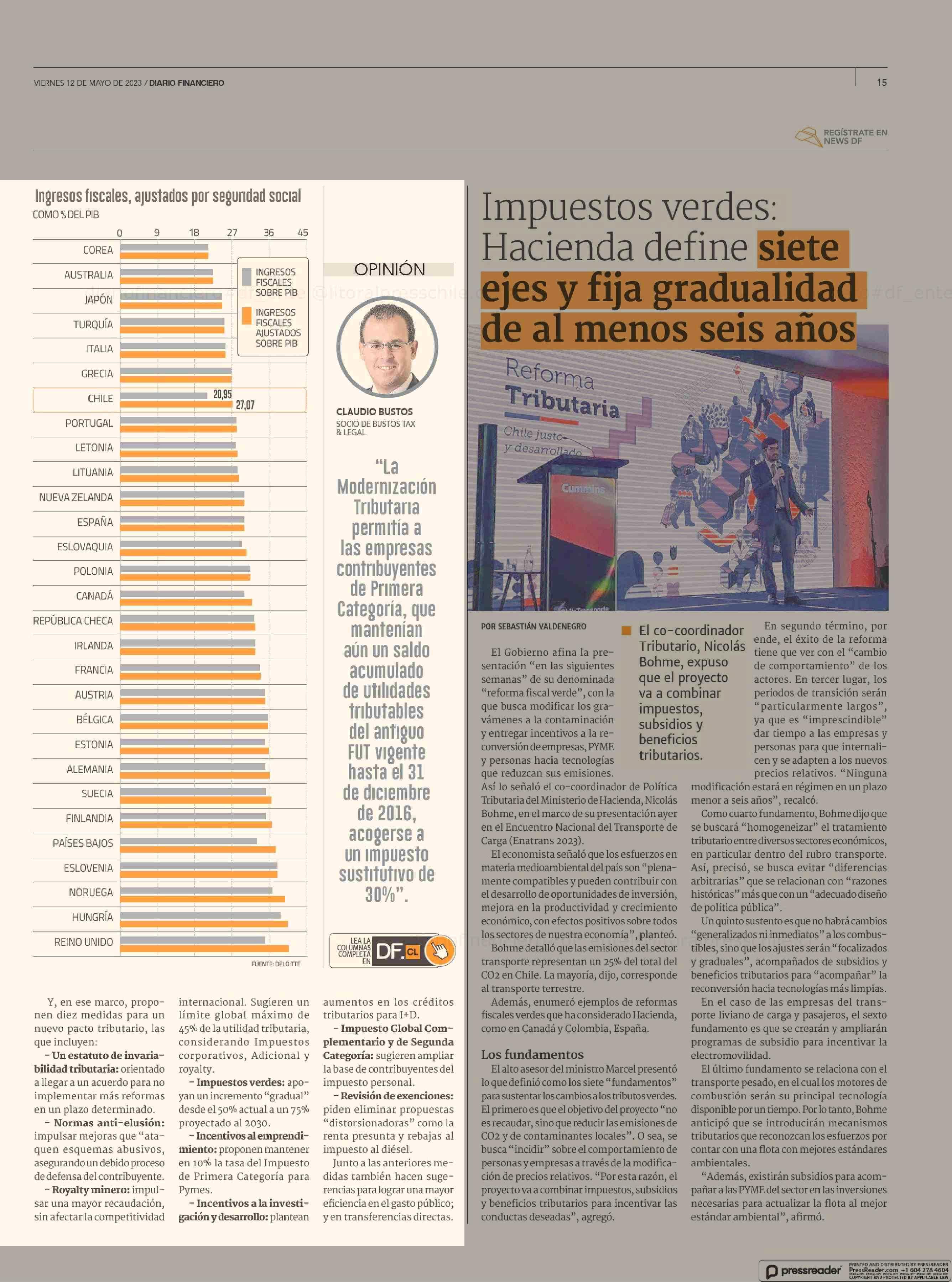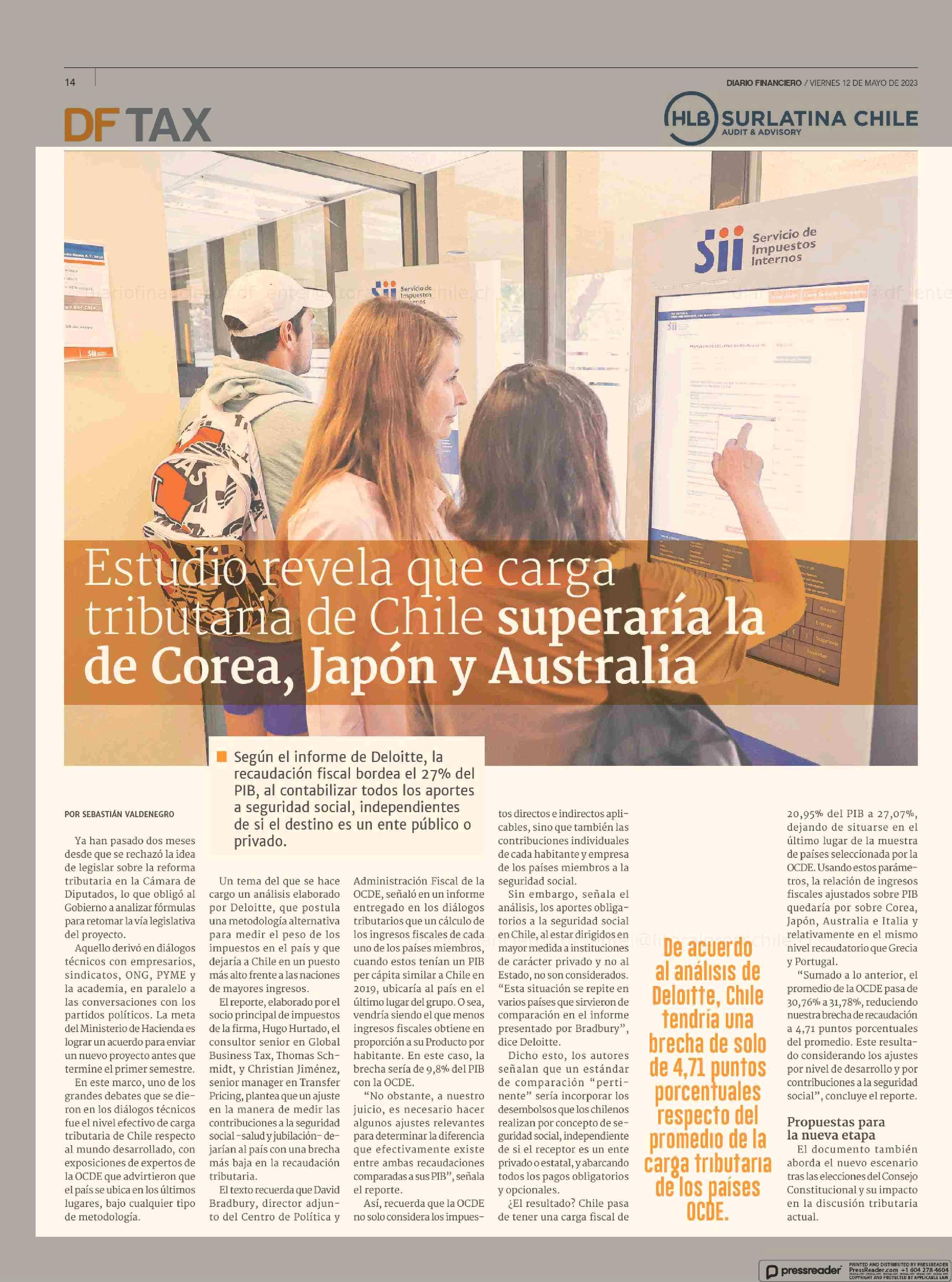 Estudio revela que carga. tributaria de Chile superaría la de Corea, Japón y Australia 12-05-2023 Diario Financiero |