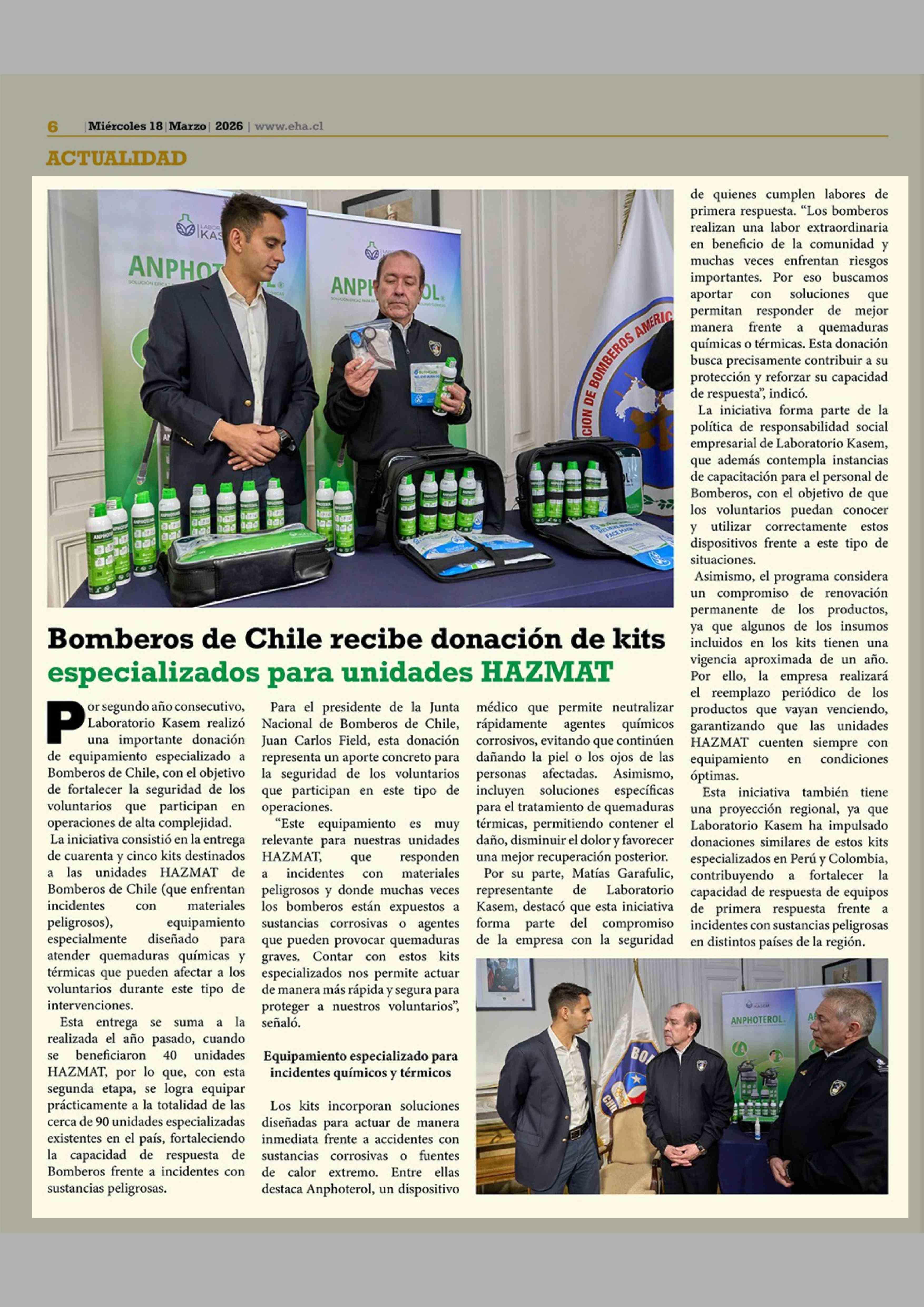Bomberos de Chile recibe donación de kits especializados para unidades HAZMAT 18-03-2026 El Heraldo Austral |