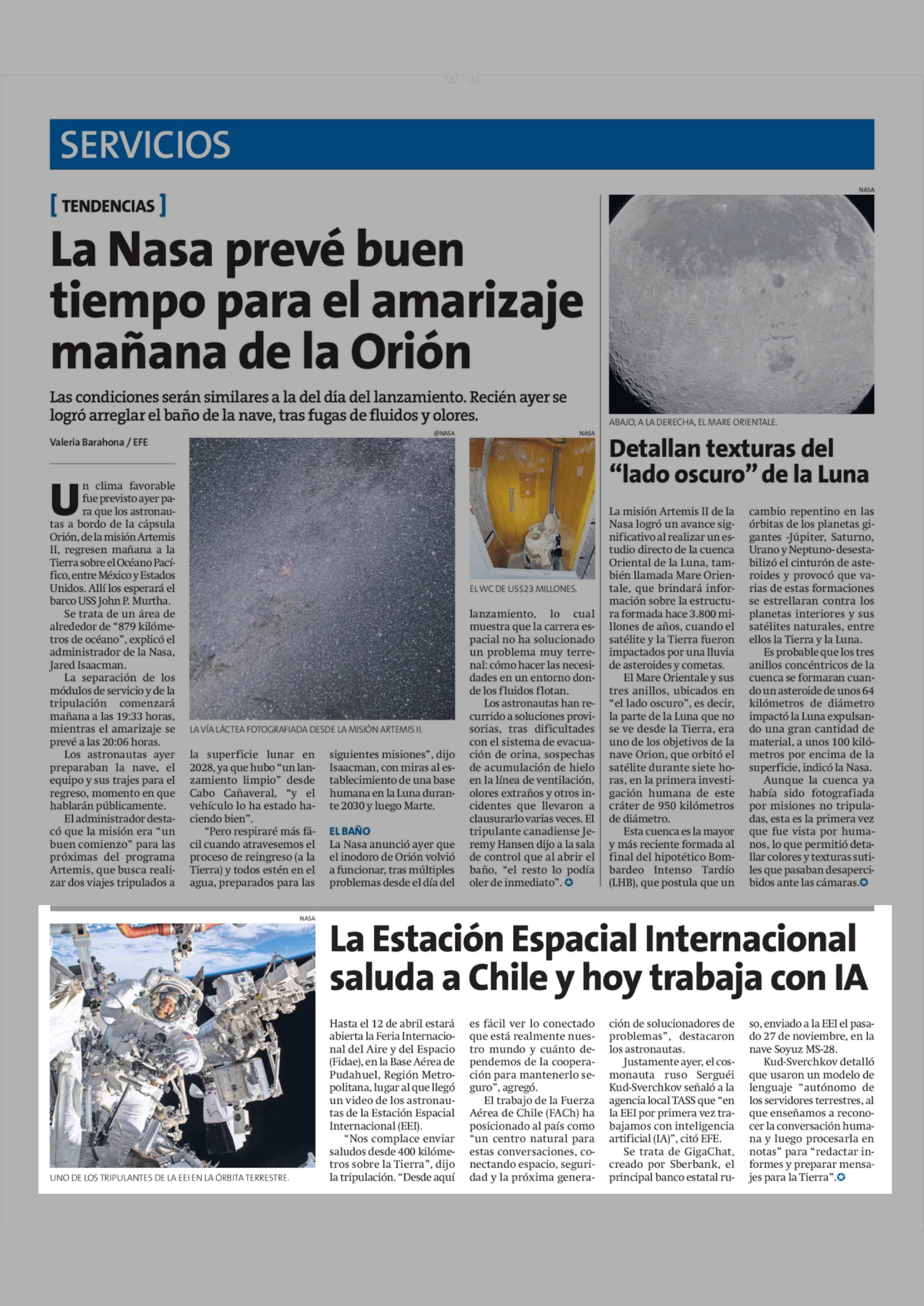 Título: La Estación Espacial Internacional saluda a Chile y hoy trabaja con IA