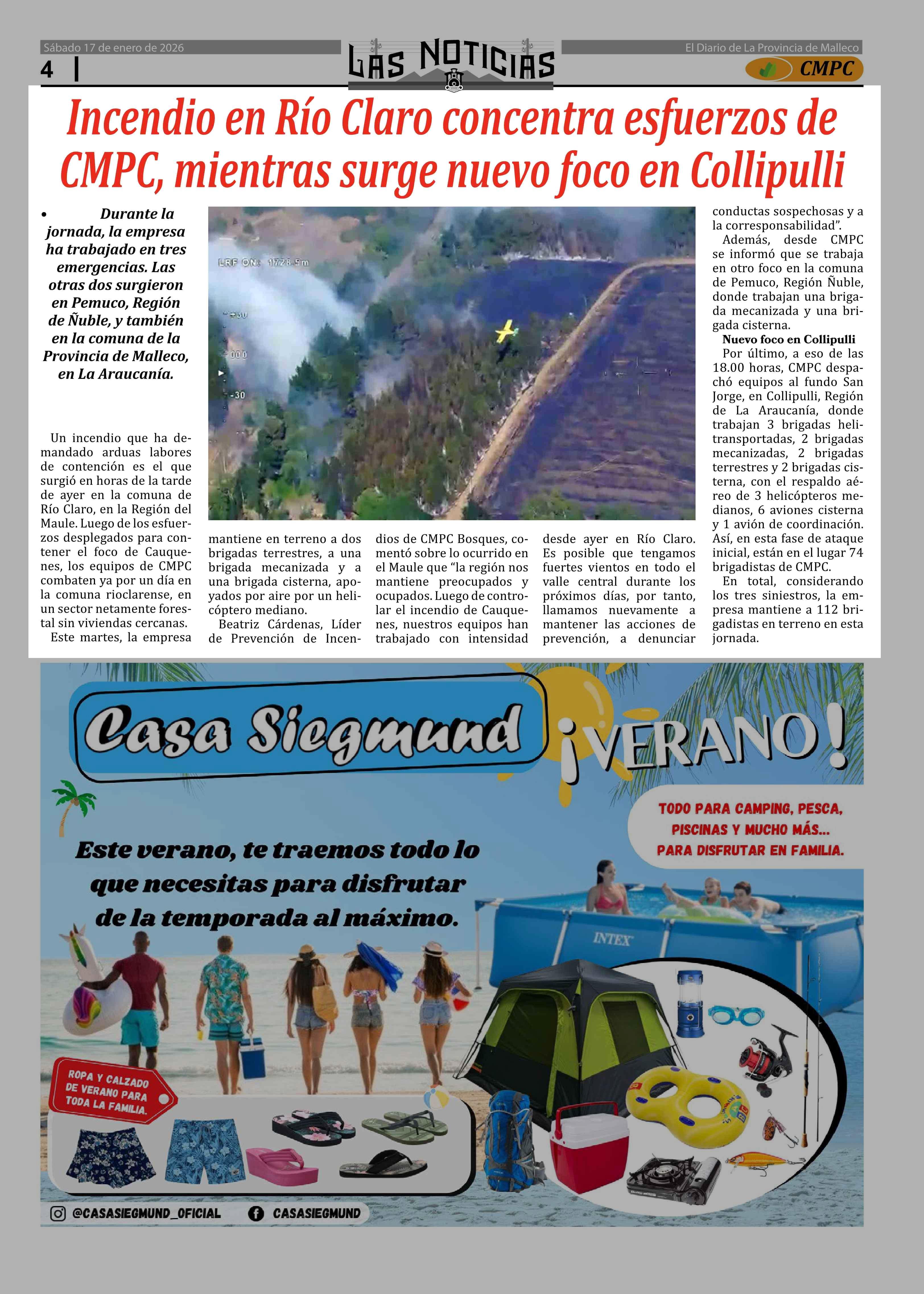 Título: Incendio en Río Claro concentra esfuerzos de CMPC, mientras surge nuevo foco en Collipulli