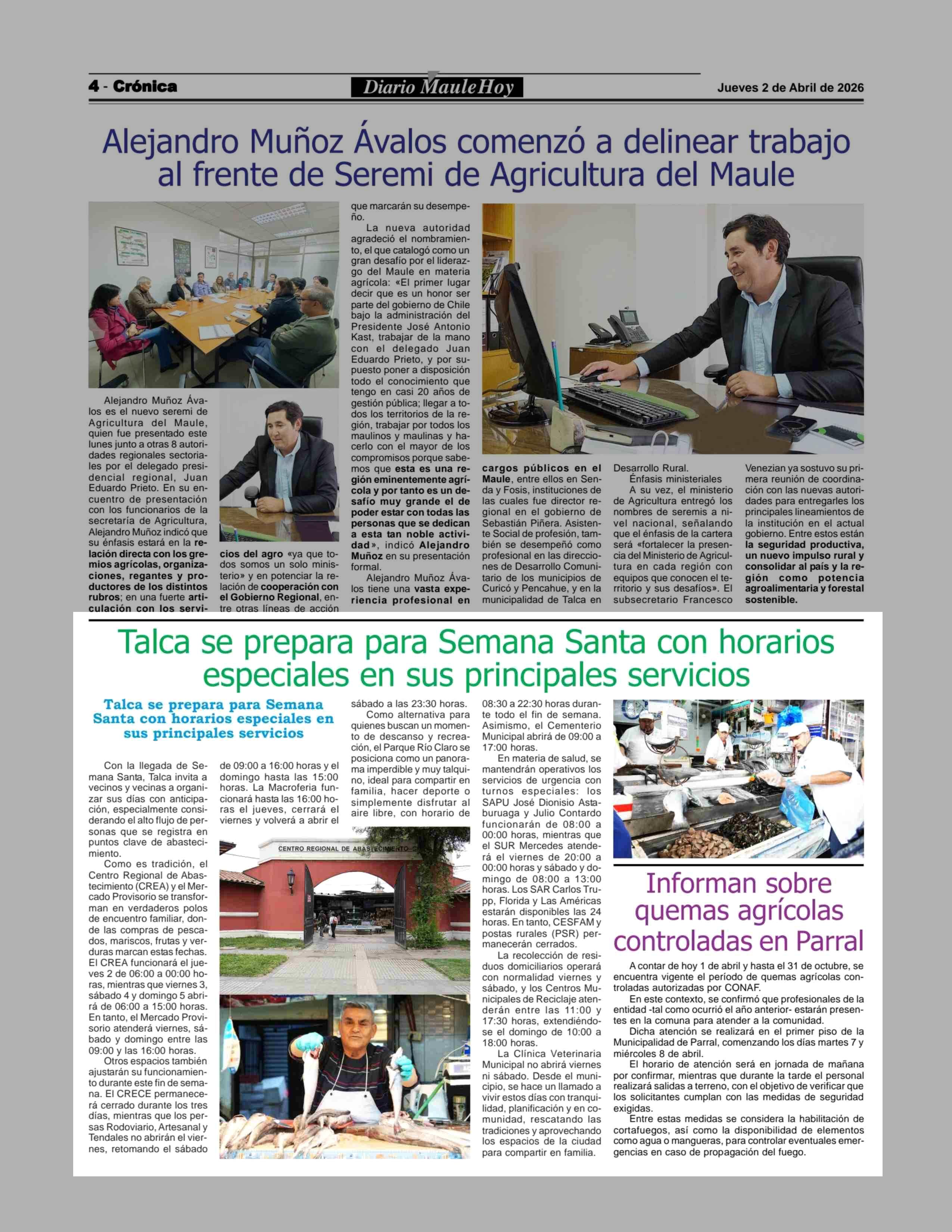 Fecha: 02-04-2026 Sector: Noticia general Región: Región del Maule
