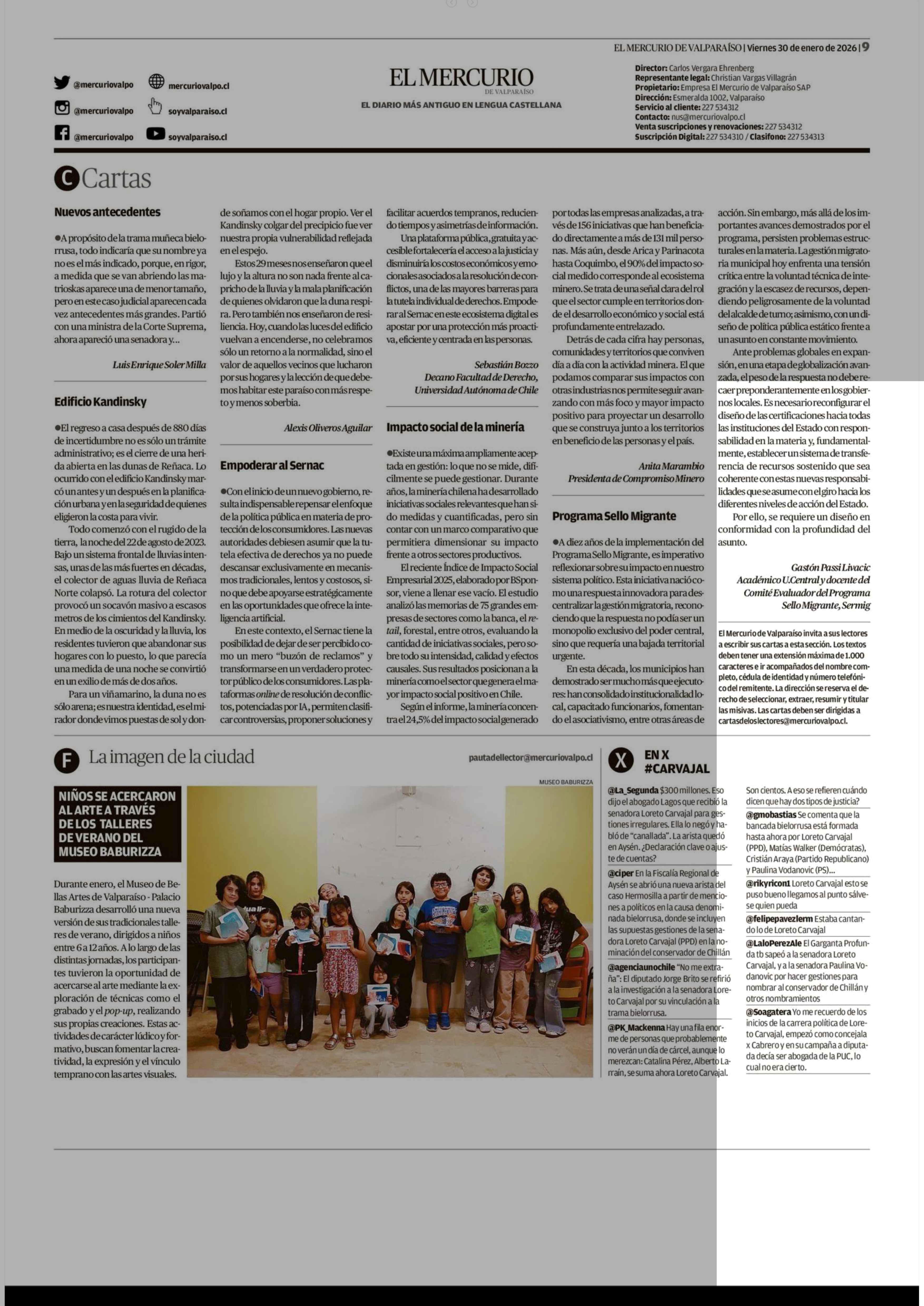 Cartas: Impacto social de la minería 30-01-2026 El Mercurio de Valparaíso |