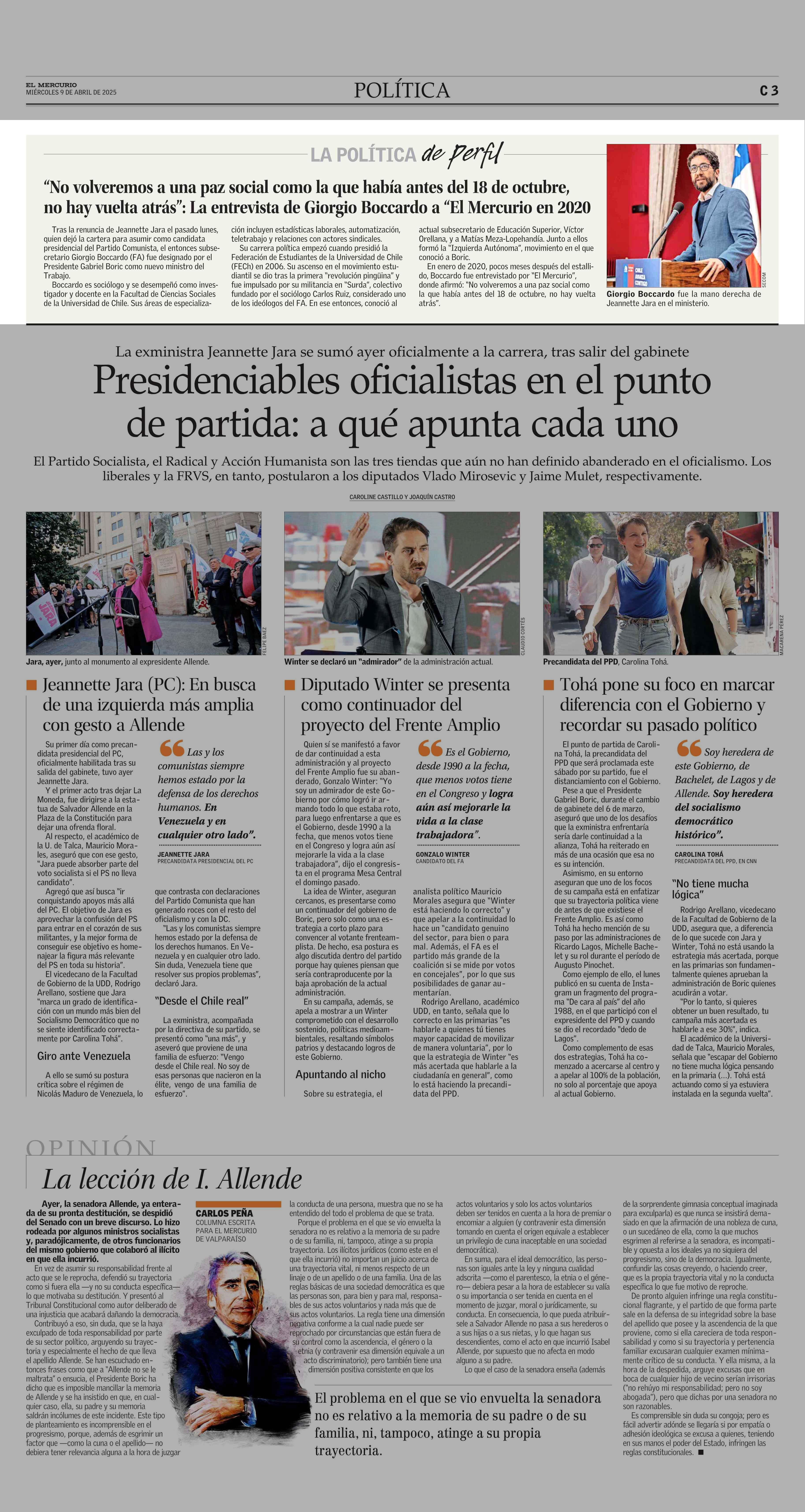 “No volveremos a una paz social como la que había antes del 18 de octubre, no hay vuelta atrás”: La entrevista de Giorgio Boccardo a “El Mercurio en 2020 09-04-2025 El Mercurio |