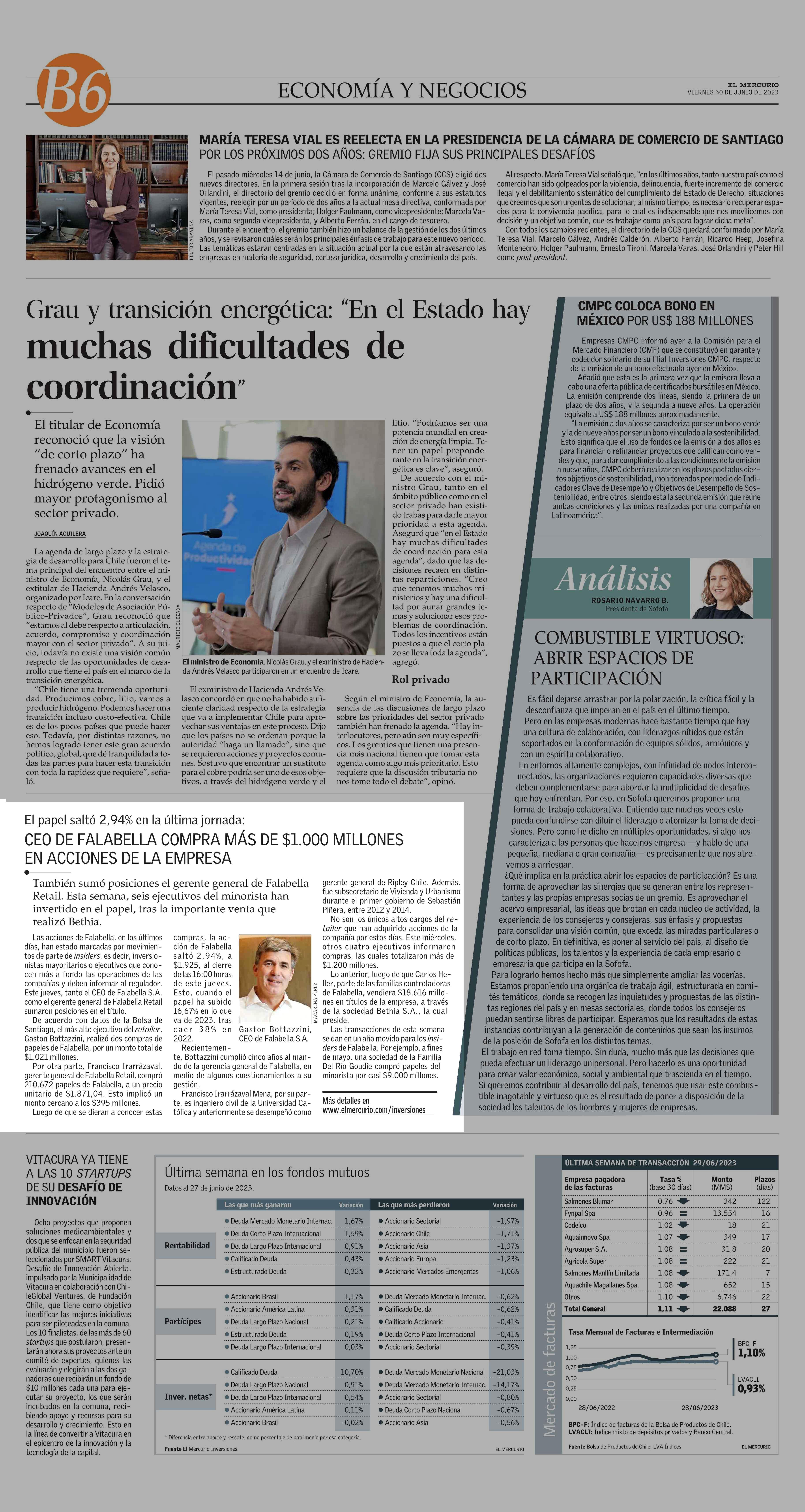 CEO DE FALABELLA COMPRA MÁS DE $1.000 MILLONES EN ACCIONES DE LA EMPRESA 30-06-2023 El Mercurio |