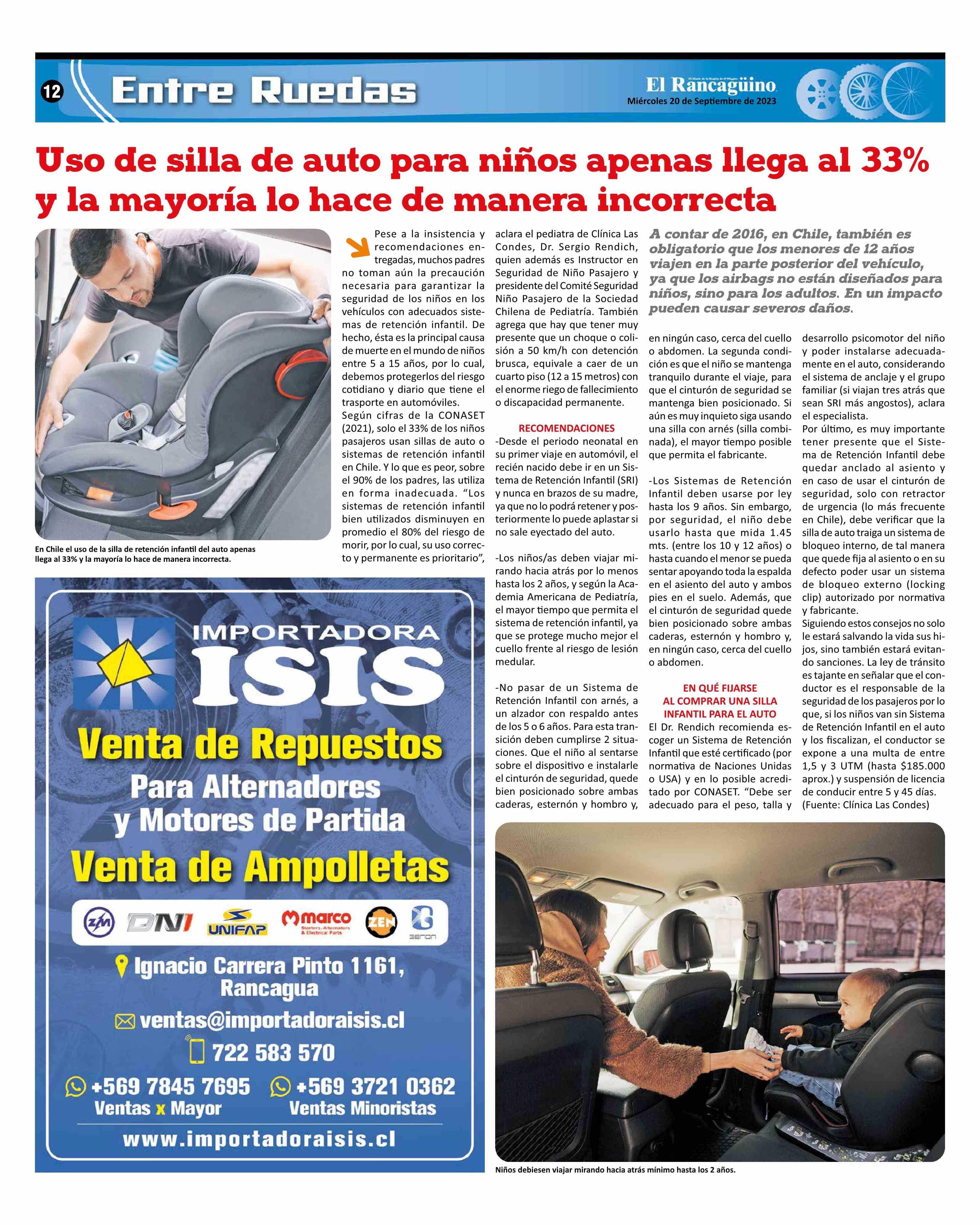 Uso de silla de auto para niños apenas llega al 33% y la mayoría lo hace de manera incorrecta 20-09-2023 El Rancagüino |