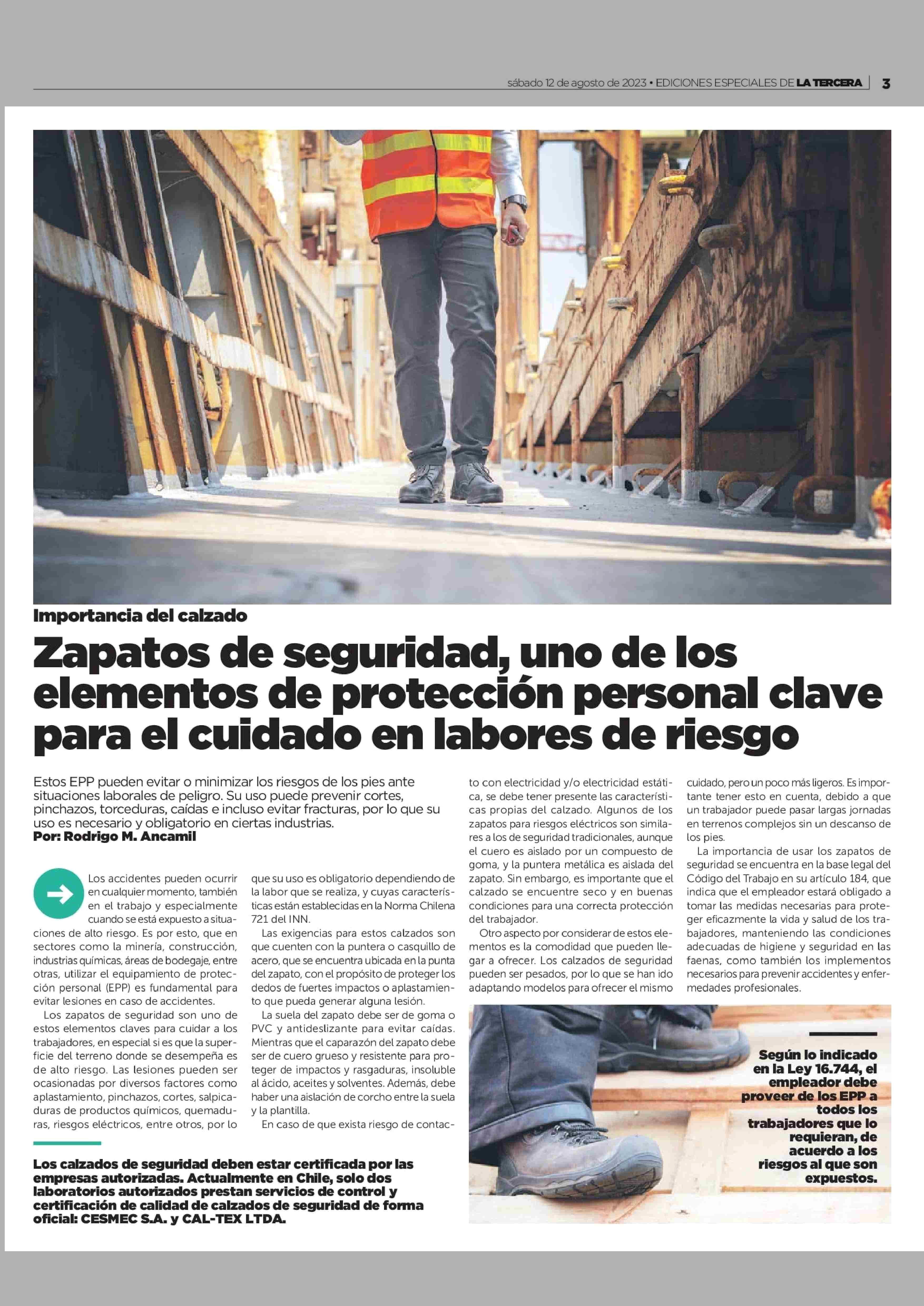 Zapatos de seguridad, uno de los elementos de protección personal clave para el cuidado en labores de riesgo 12-08-2023 La Tercera |