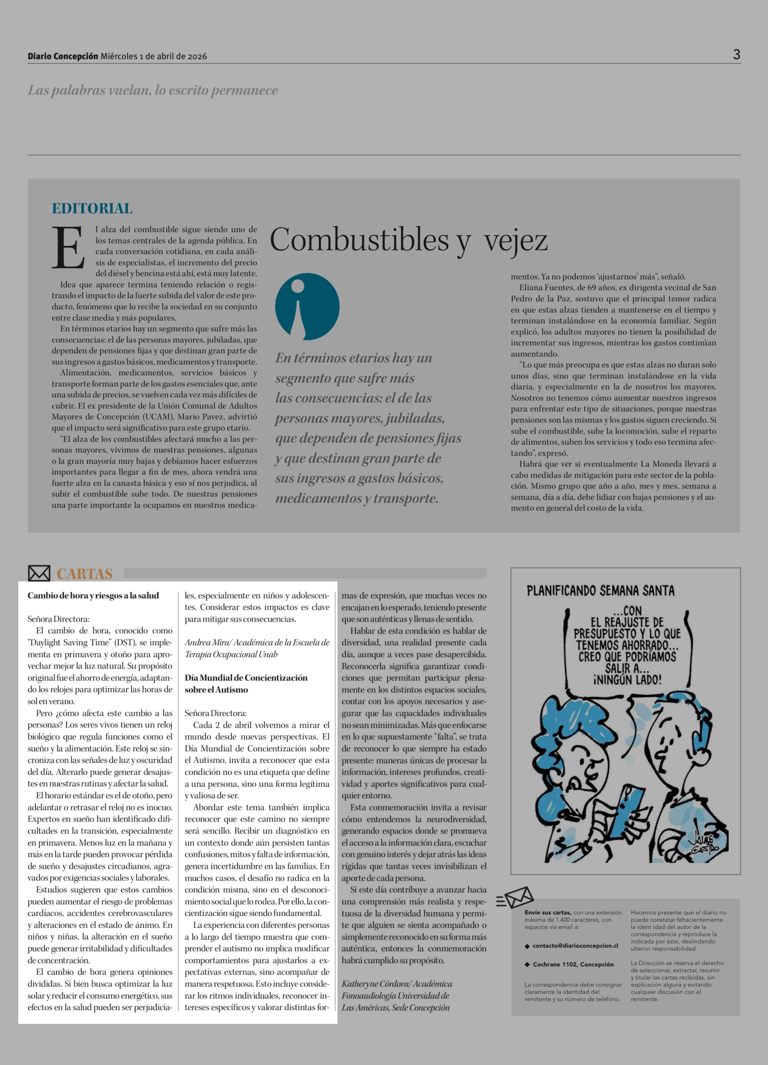Cartas: Cambio de hora y riesgos a la salud 02-04-2026 Diario Concepción |
