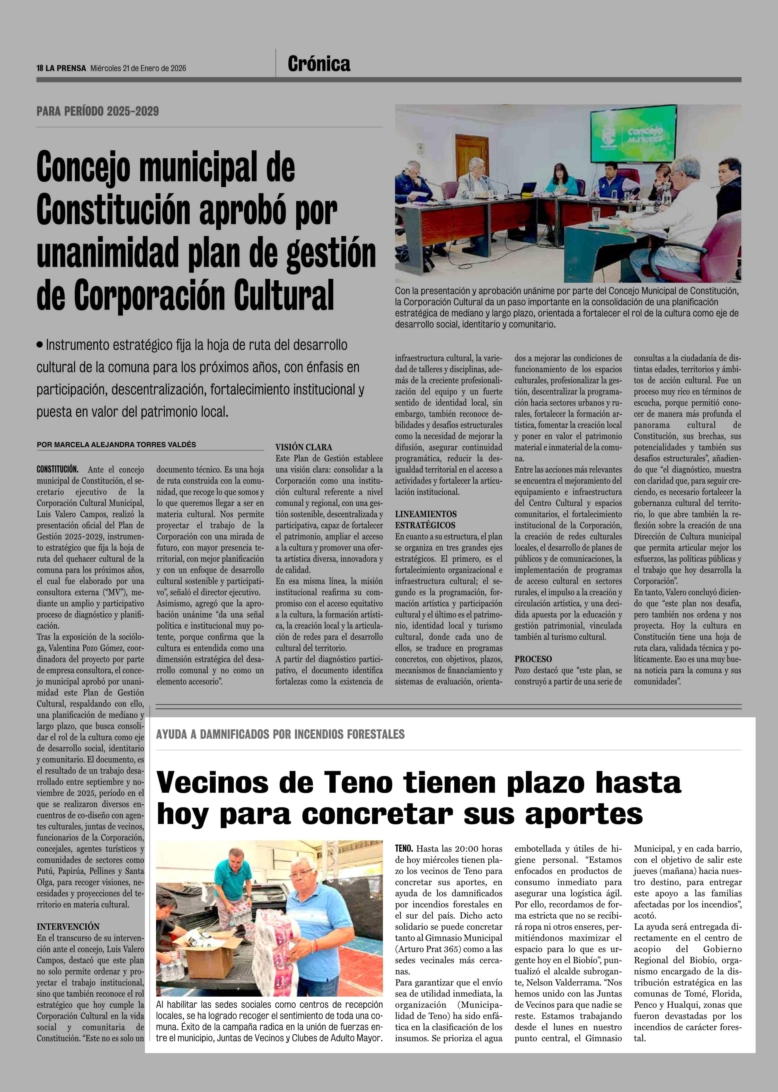 Fecha: 21-01-2026 Sector: Noticia general Región: Región del Maule
