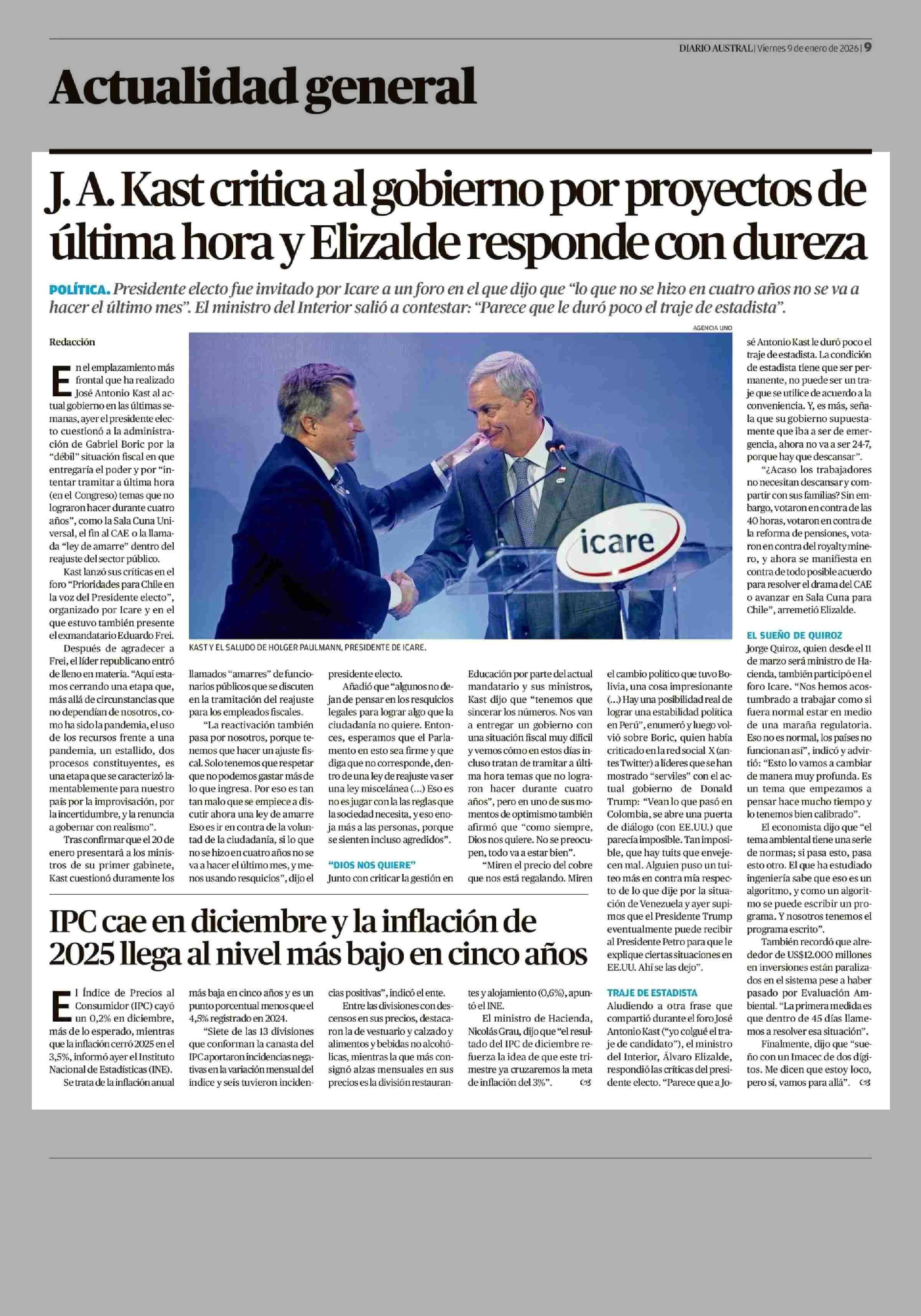 J. A. Kast critica al gobierno por proyectos de última hora y Elizalde responde con dureza 09-01-2026 Diario Austral Región de Los Ríos |
