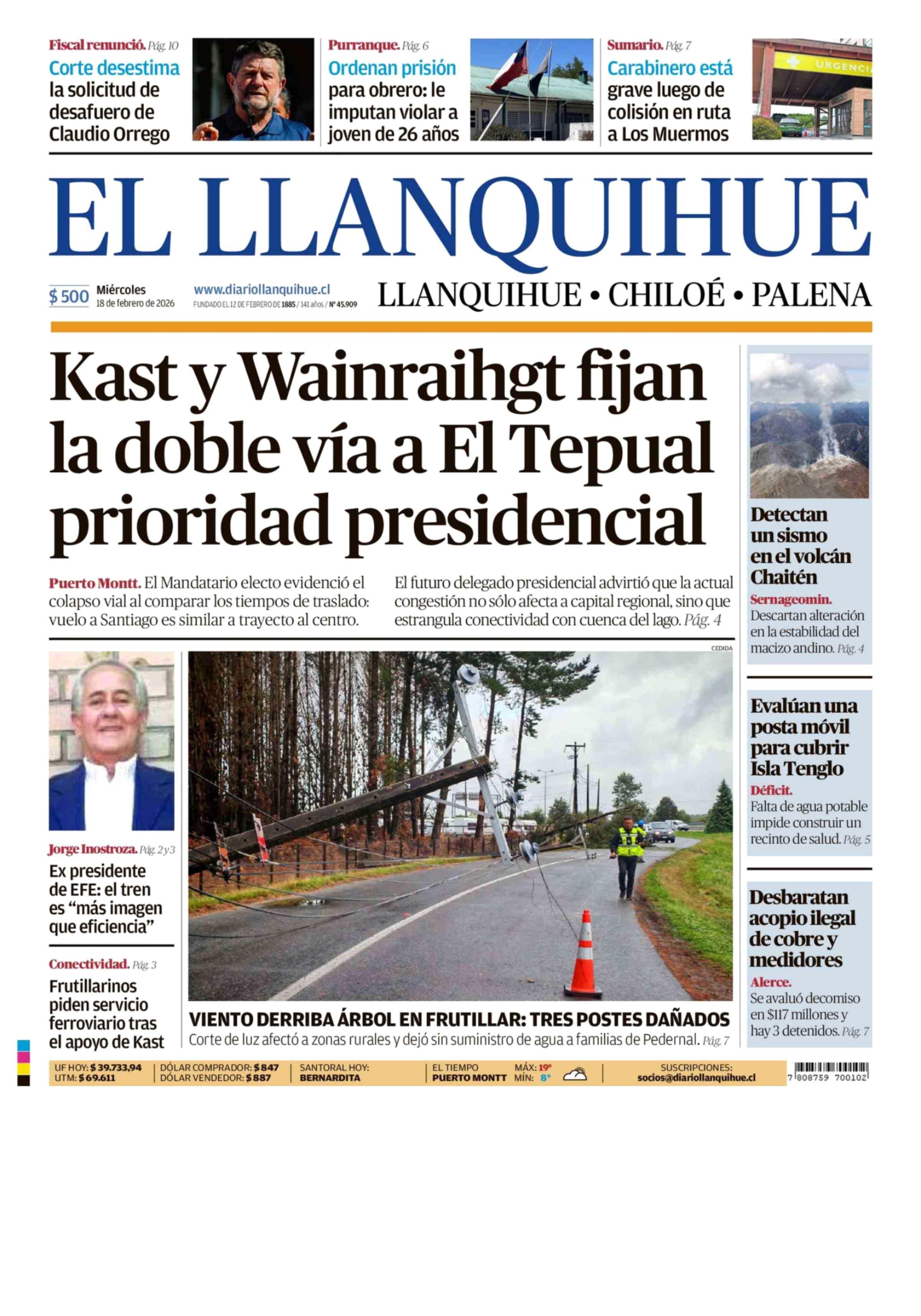 Fecha: 18-02-2026 Sector: Portada Región: Región de Los Lagos