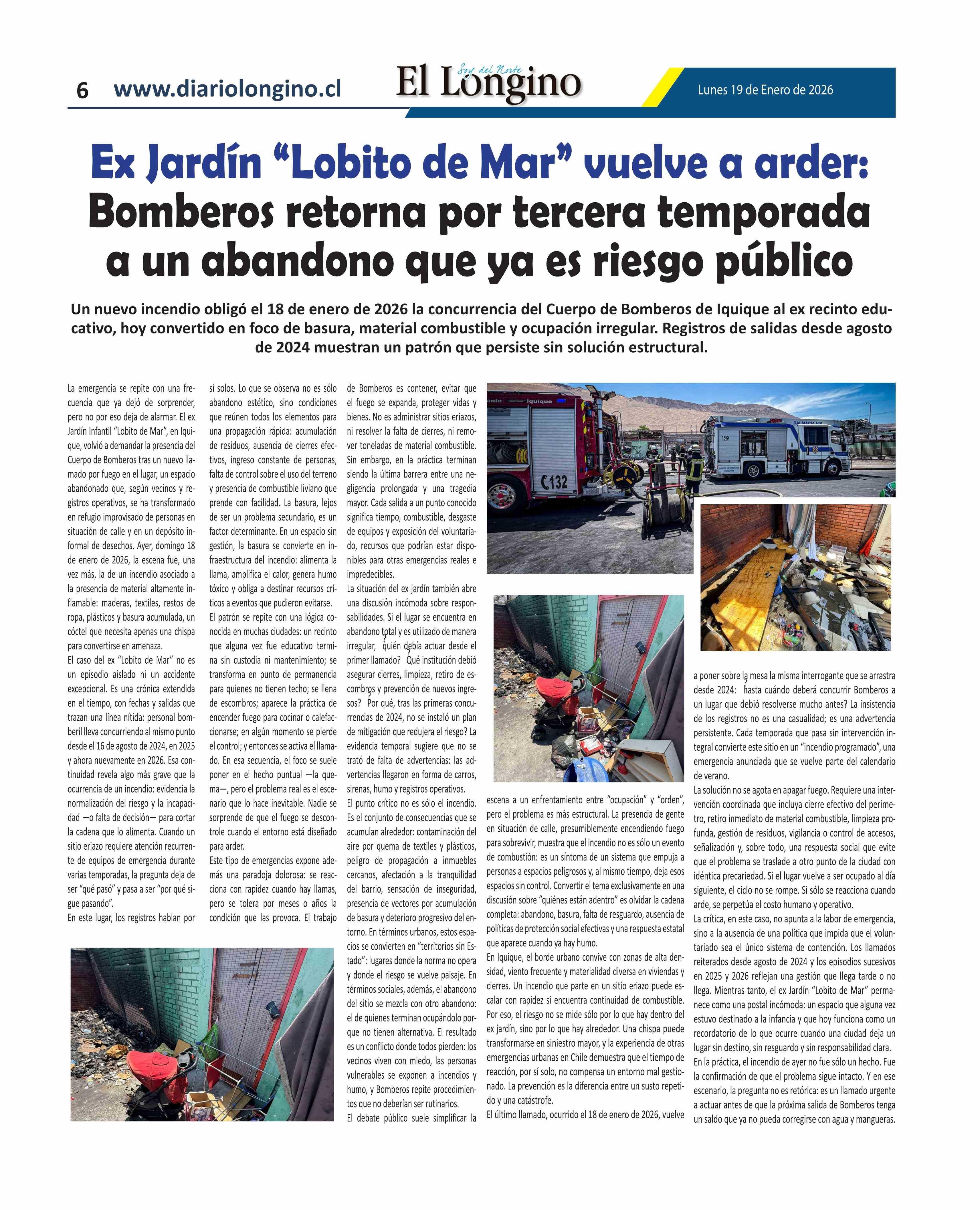 Título: Ex Jardín "Lobito de Mar" vuelve a arder: Bomberos retorna por tercera temporada a un abandono que ya es riesgo público