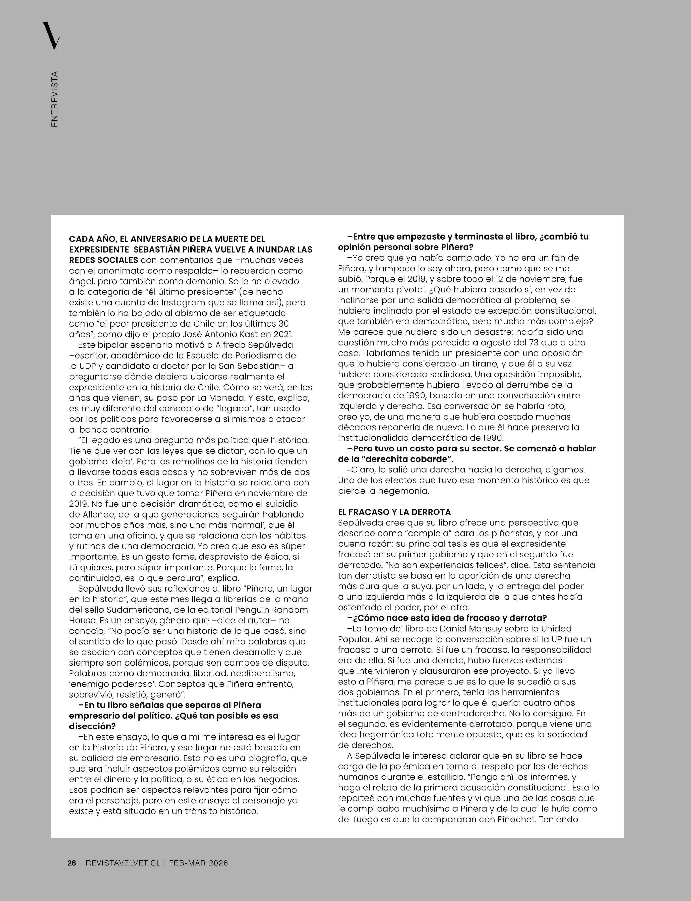 ALFREDO SEPÚLVEDA 02-03-2026 Revista Velvet |