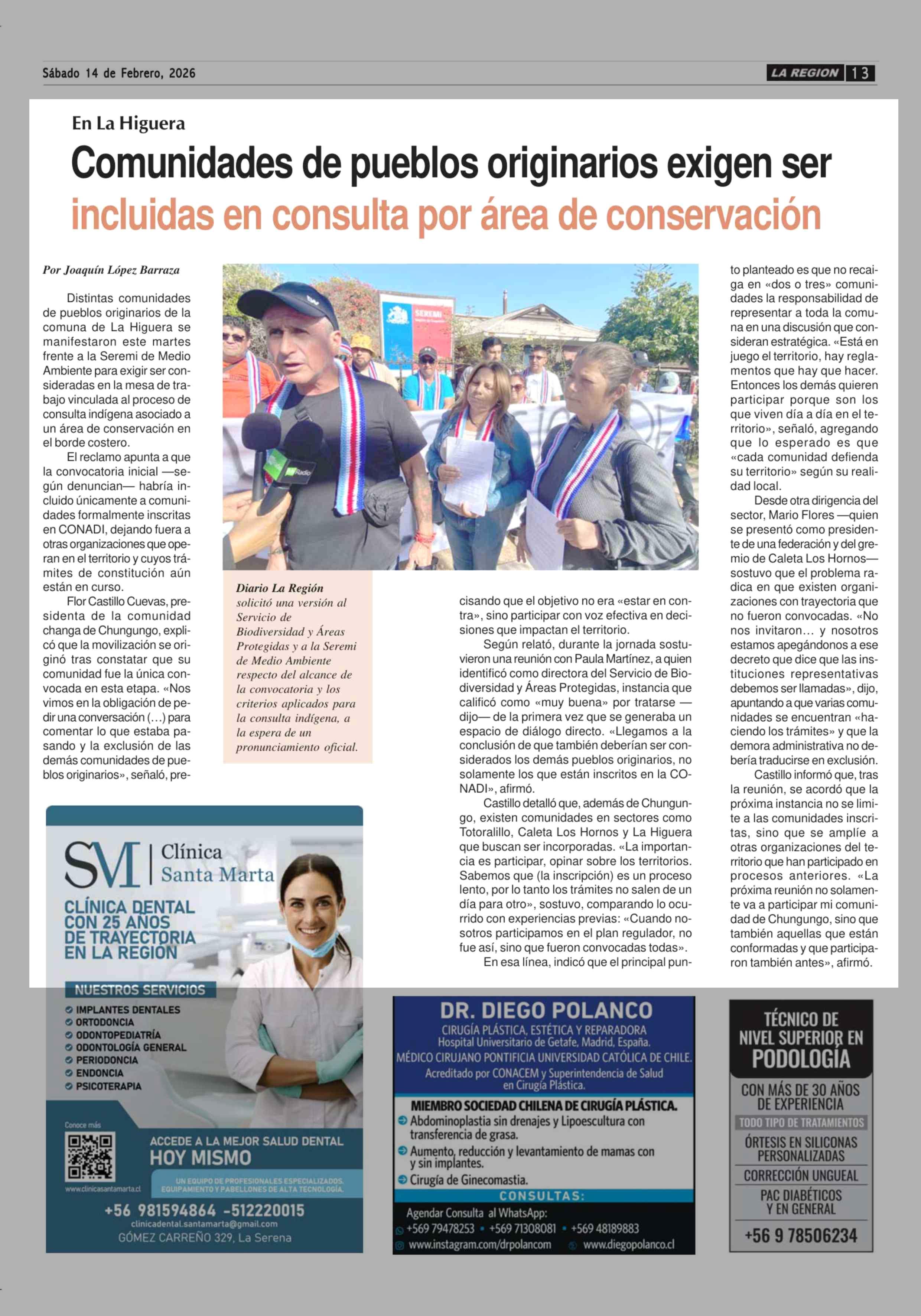 Comunidades de pueblos originarios exigen ser incluidas en consulta por área de conservación 14-02-2026 Diario la Región |