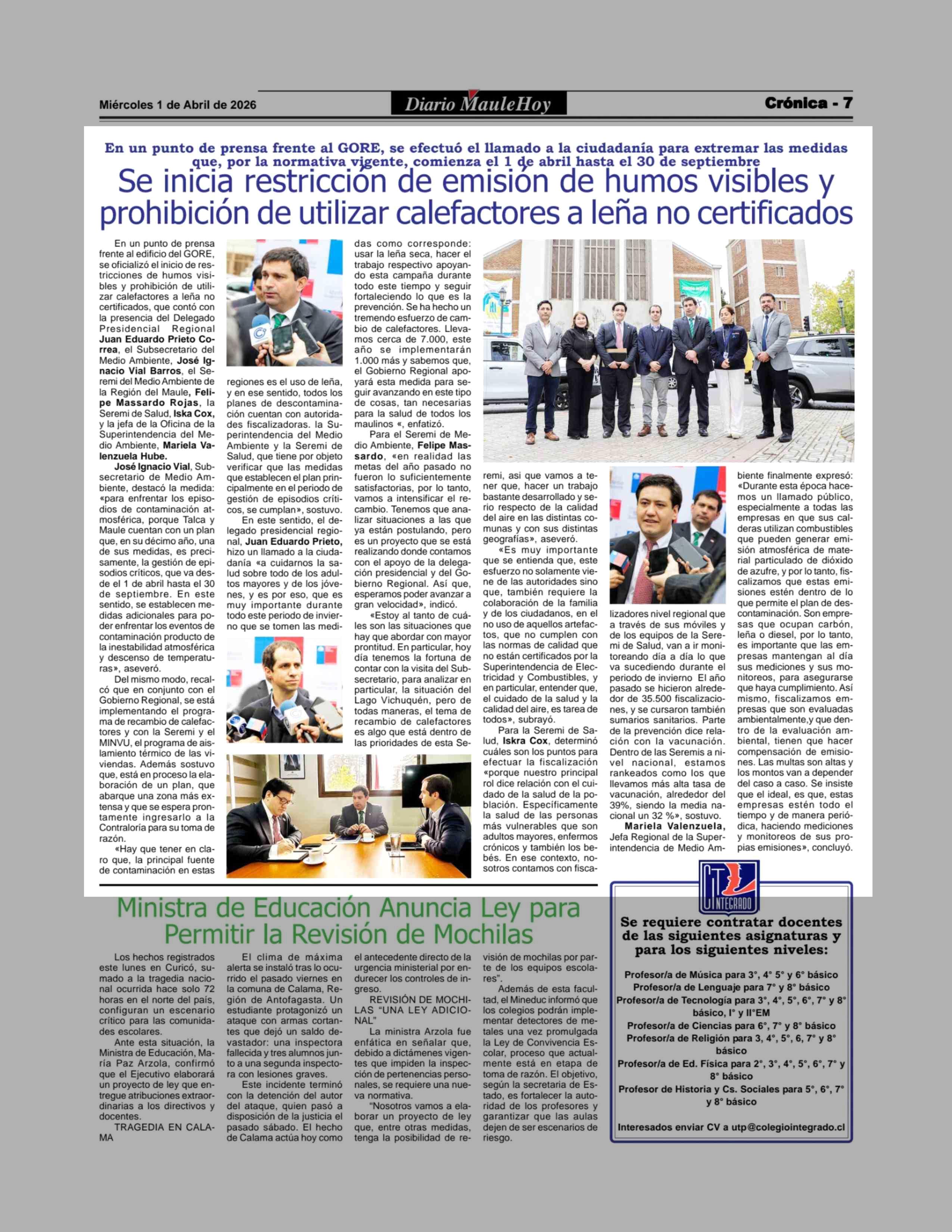 Fecha: 01-04-2026 Sector: Noticia general Región: Región del Maule