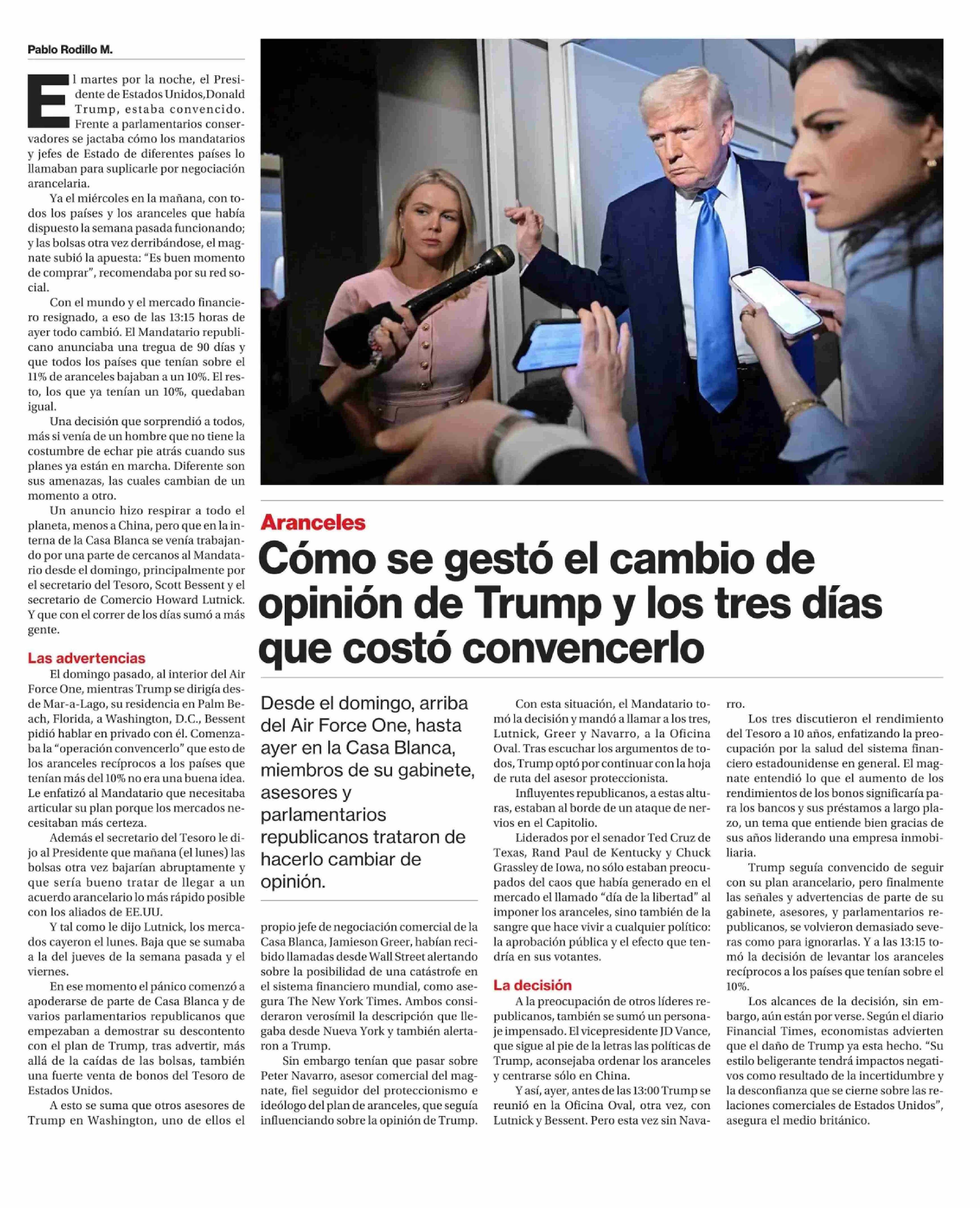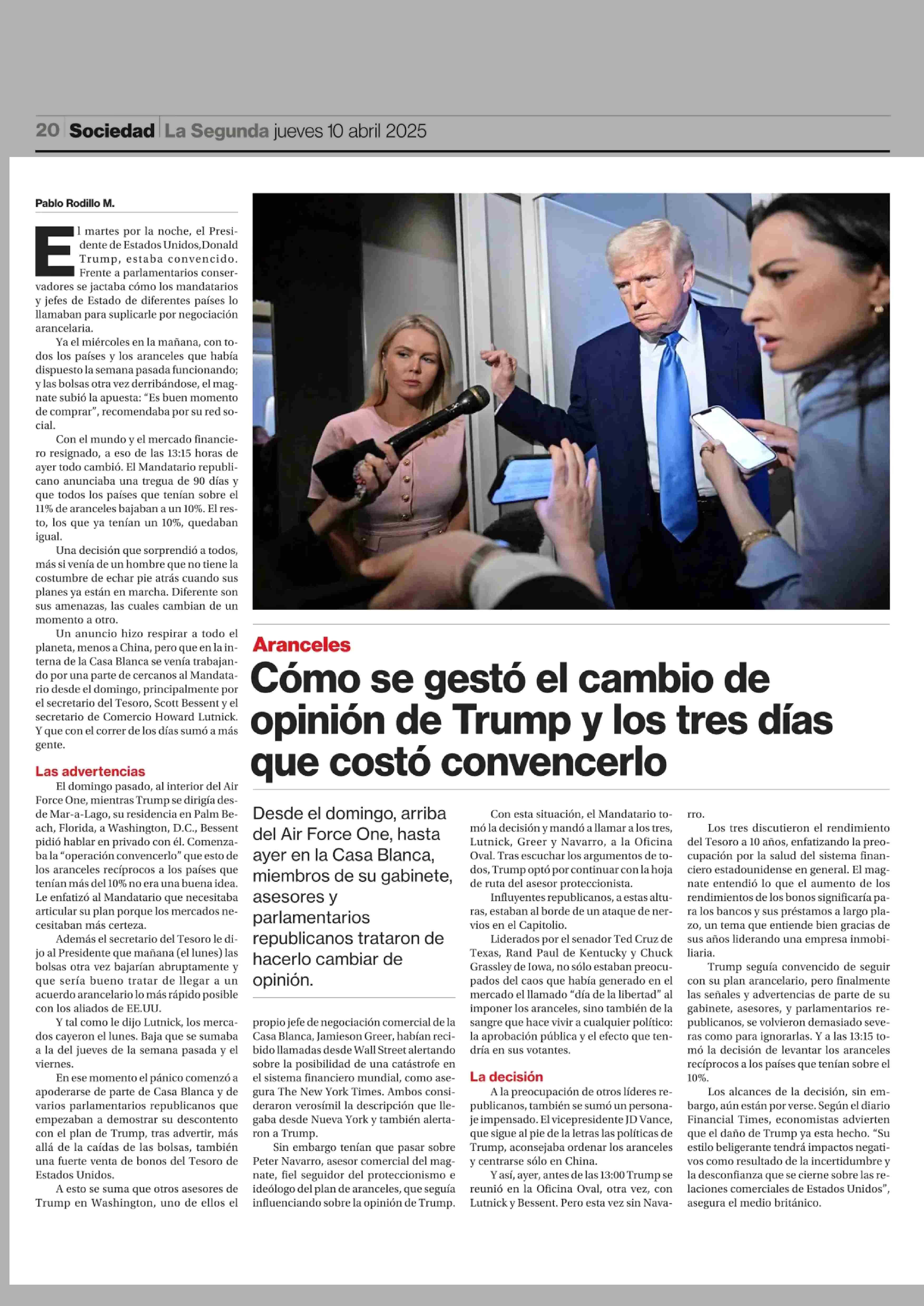 Cómo se gestó el cambio de opinión de Trump y los tres días que costó convencerlo 10-04-2025 La Segunda |