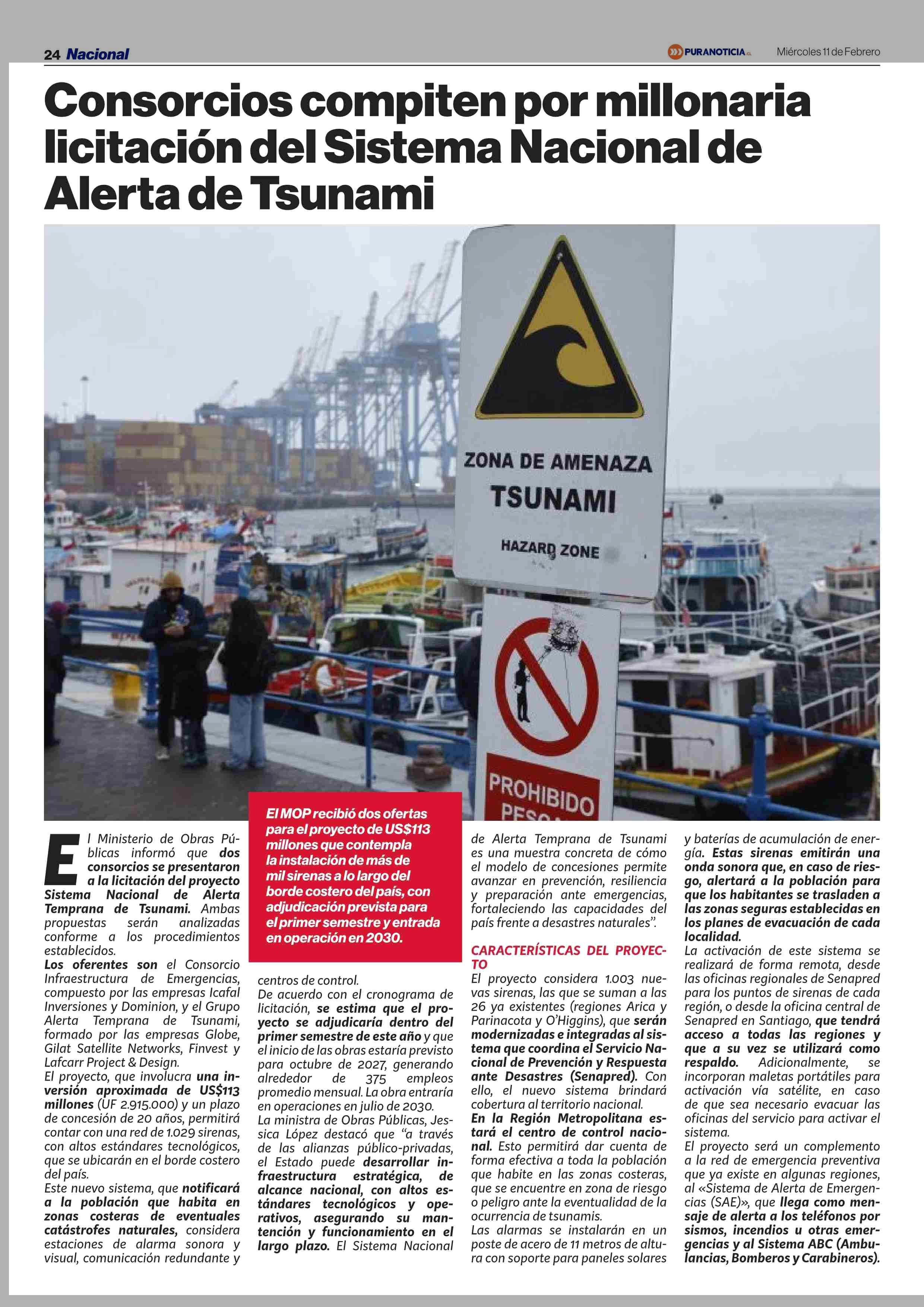 Consorcios compiten por millonaria licitación del Sistema Nacional de Alerta de Tsunami 11-02-2026 Puranoticia.cl |