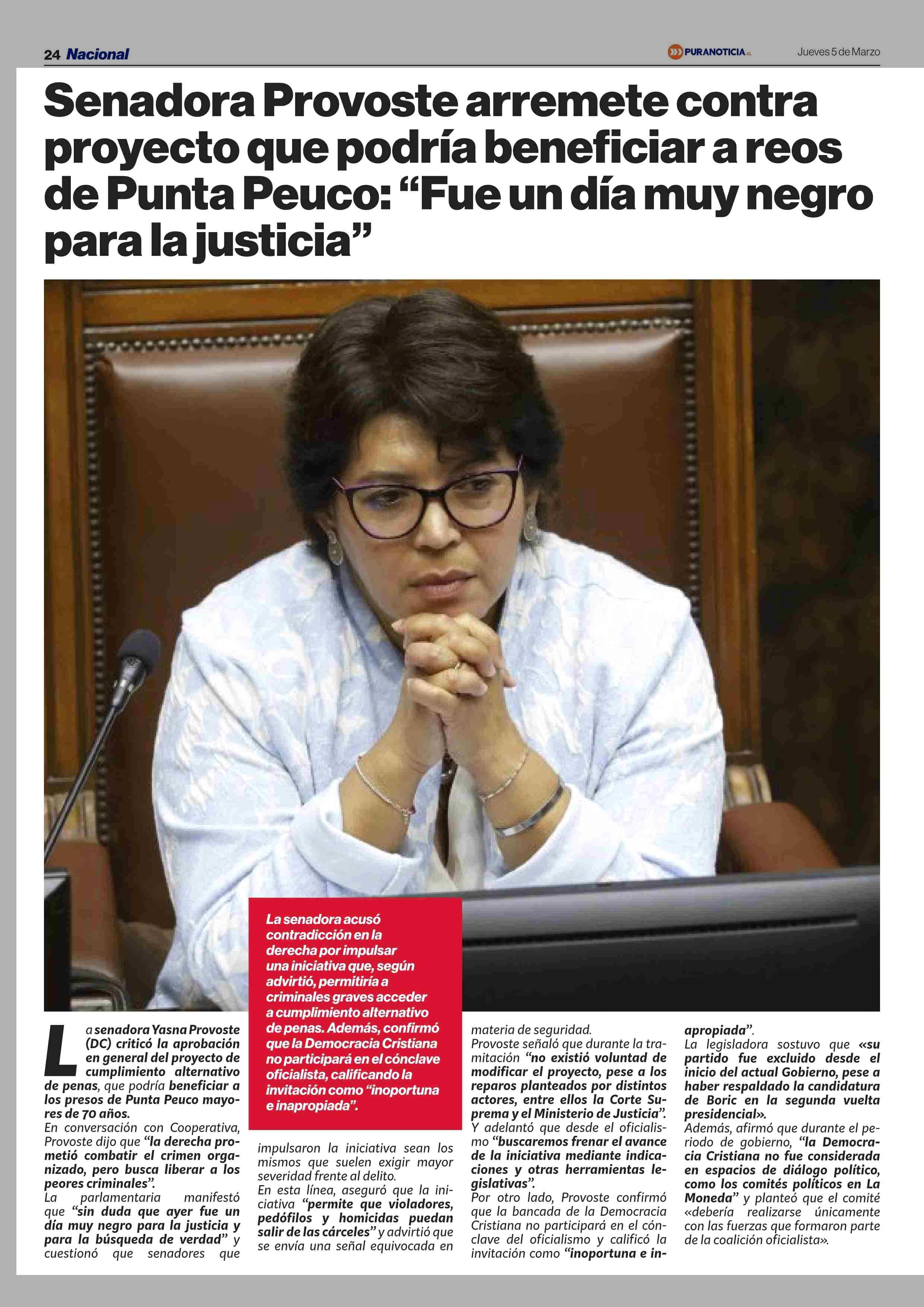 Título: Senadora Provoste arremete contra proyecto que podría beneficiar a reos de Punta Peuco: “Fue un día muy negro para la justicia”