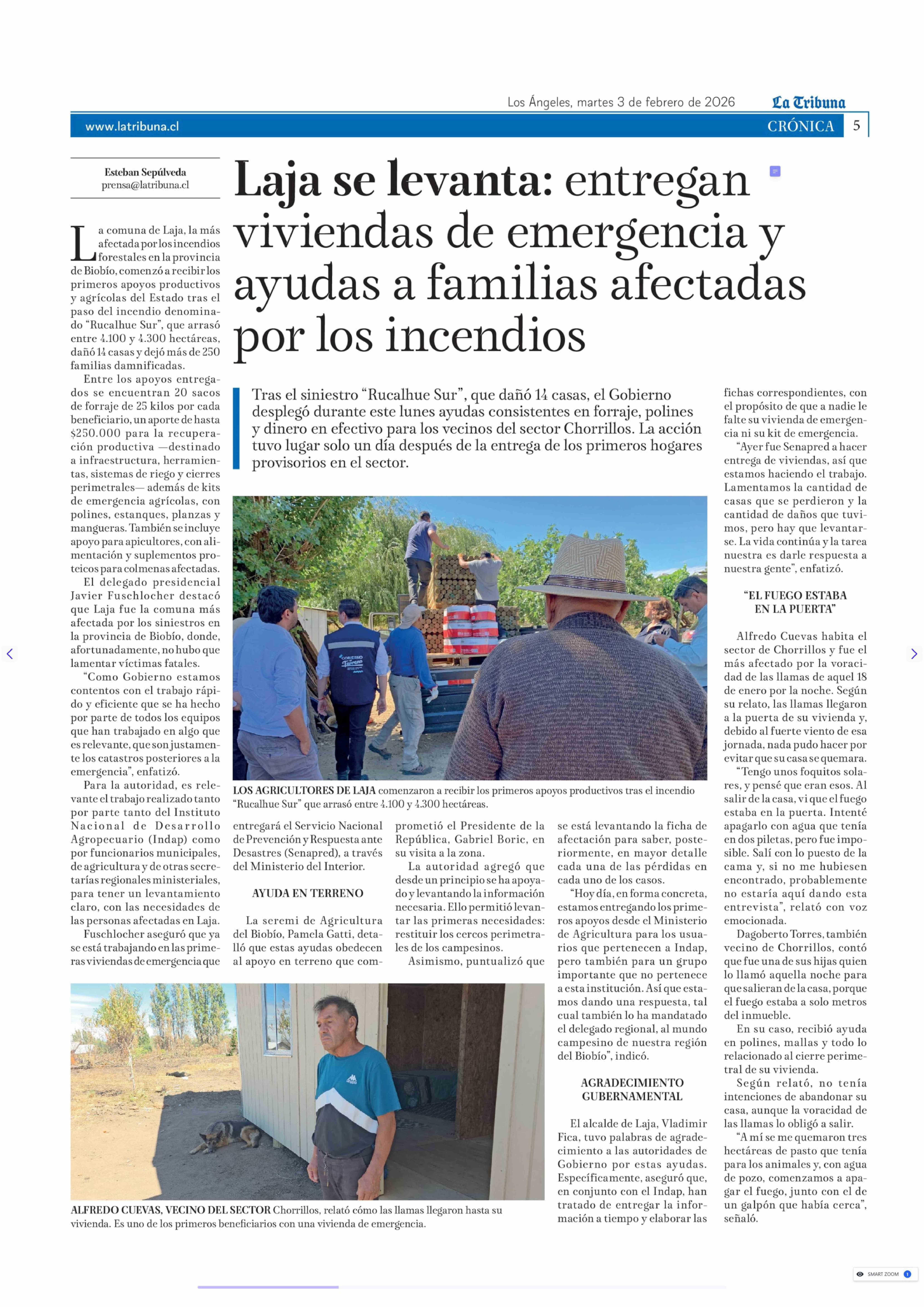 Laja se levanta: entregan viviendas de emergencia y ayudas a familias afectadas por los incendios 03-02-2026 La Tribuna |