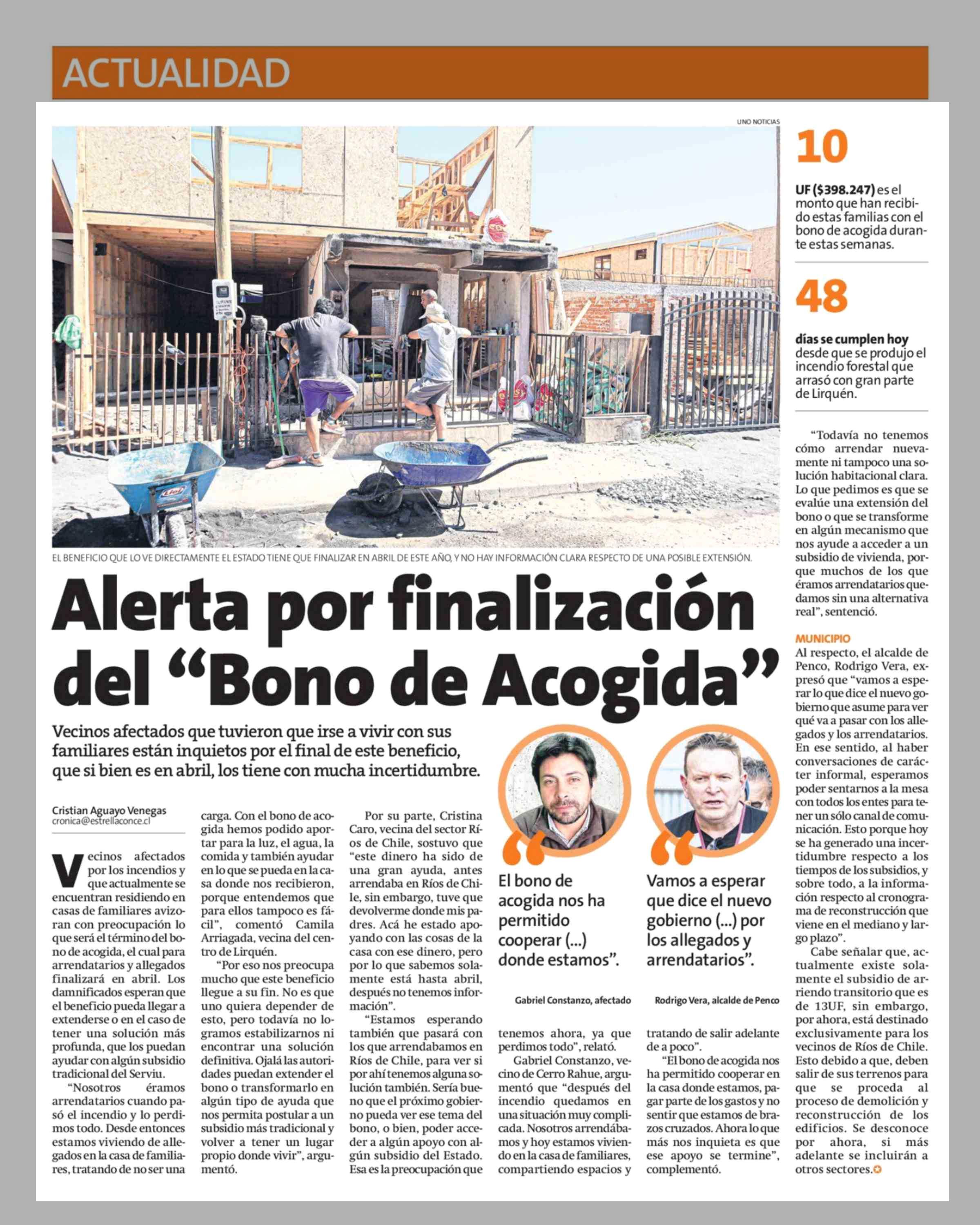 Alerta por finalización del "Bono de Acogida" 07-03-2026 La Estrella de Concepción |