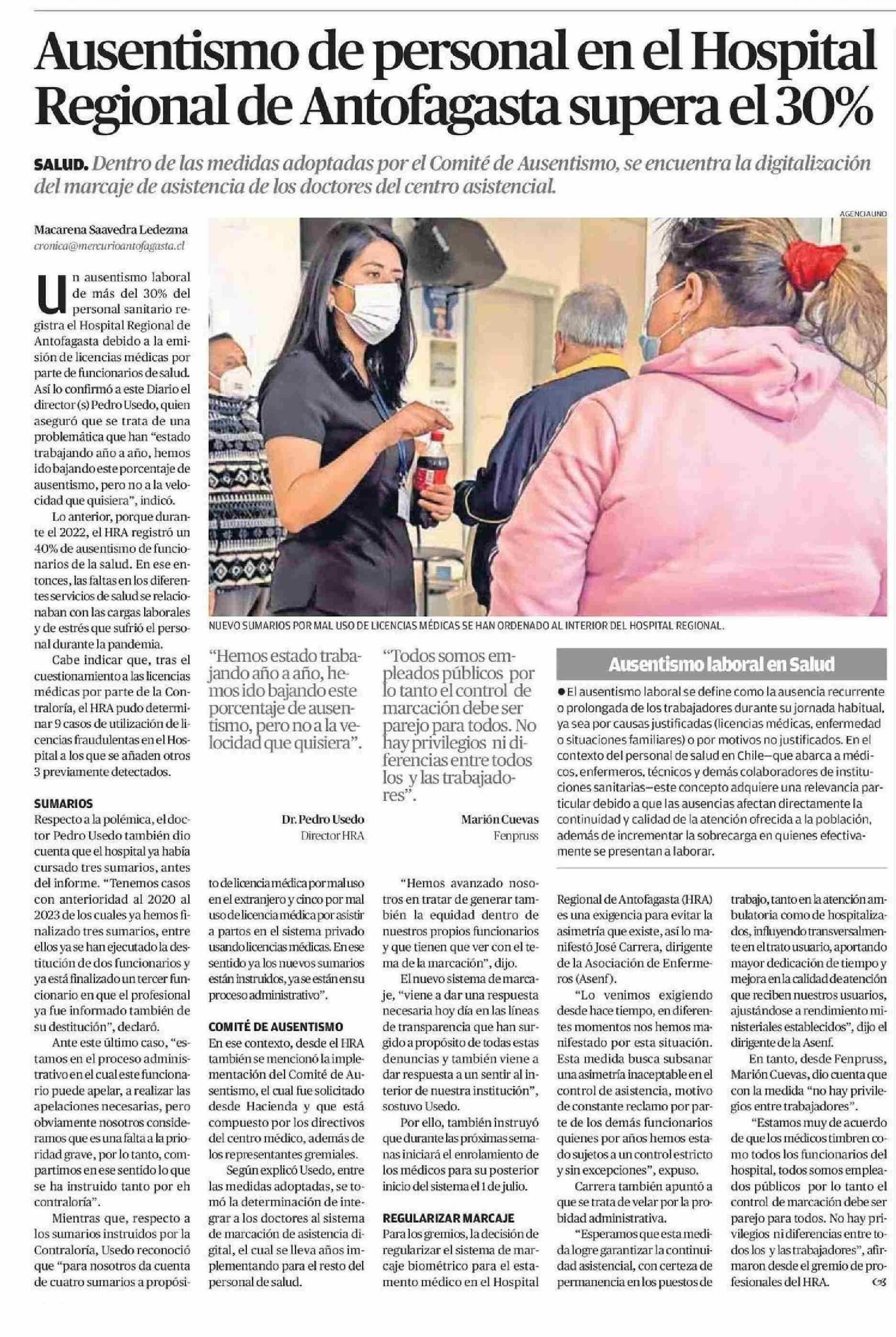 Título: Ausentismo de personal en el Hospital Regional de Antofagasta supera el 30%