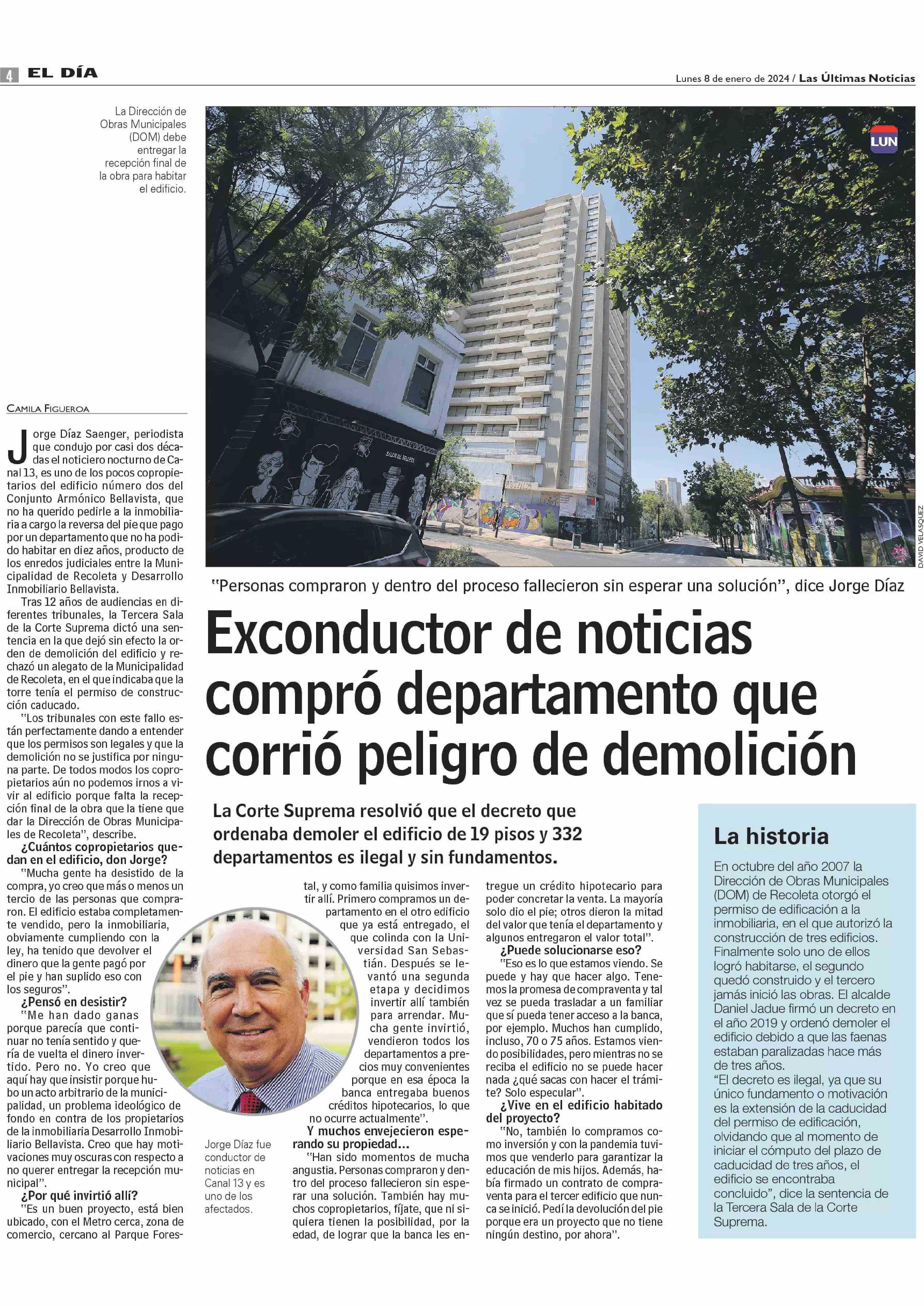 Exconductor de noticias compró departamento que corrió peligro de demolición 08-01-2024 Las Últimas Noticias |