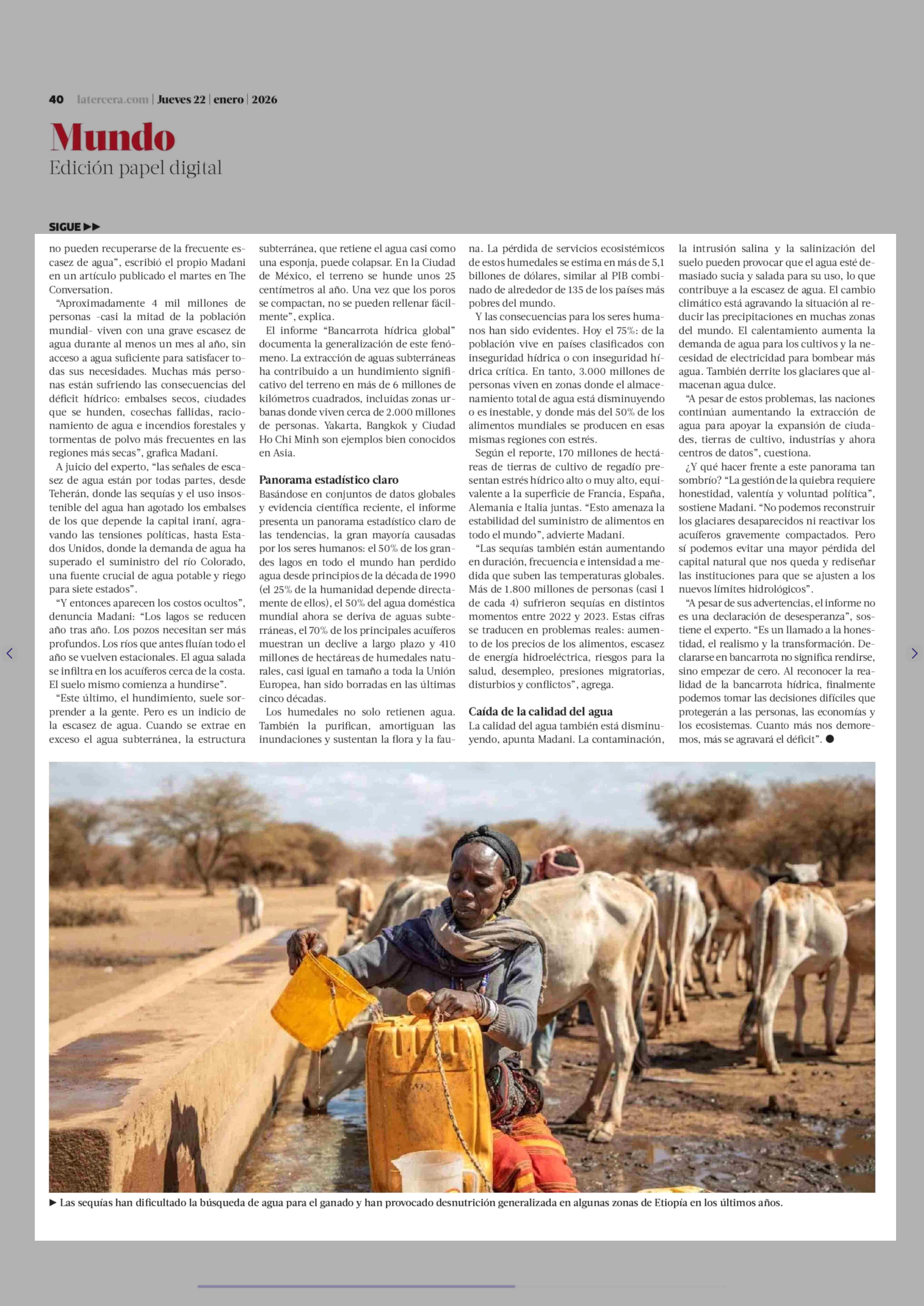 Título: Dramático informe de la ONU advierte que la humanidad entró en la era de la “bancarrota hídrica global”