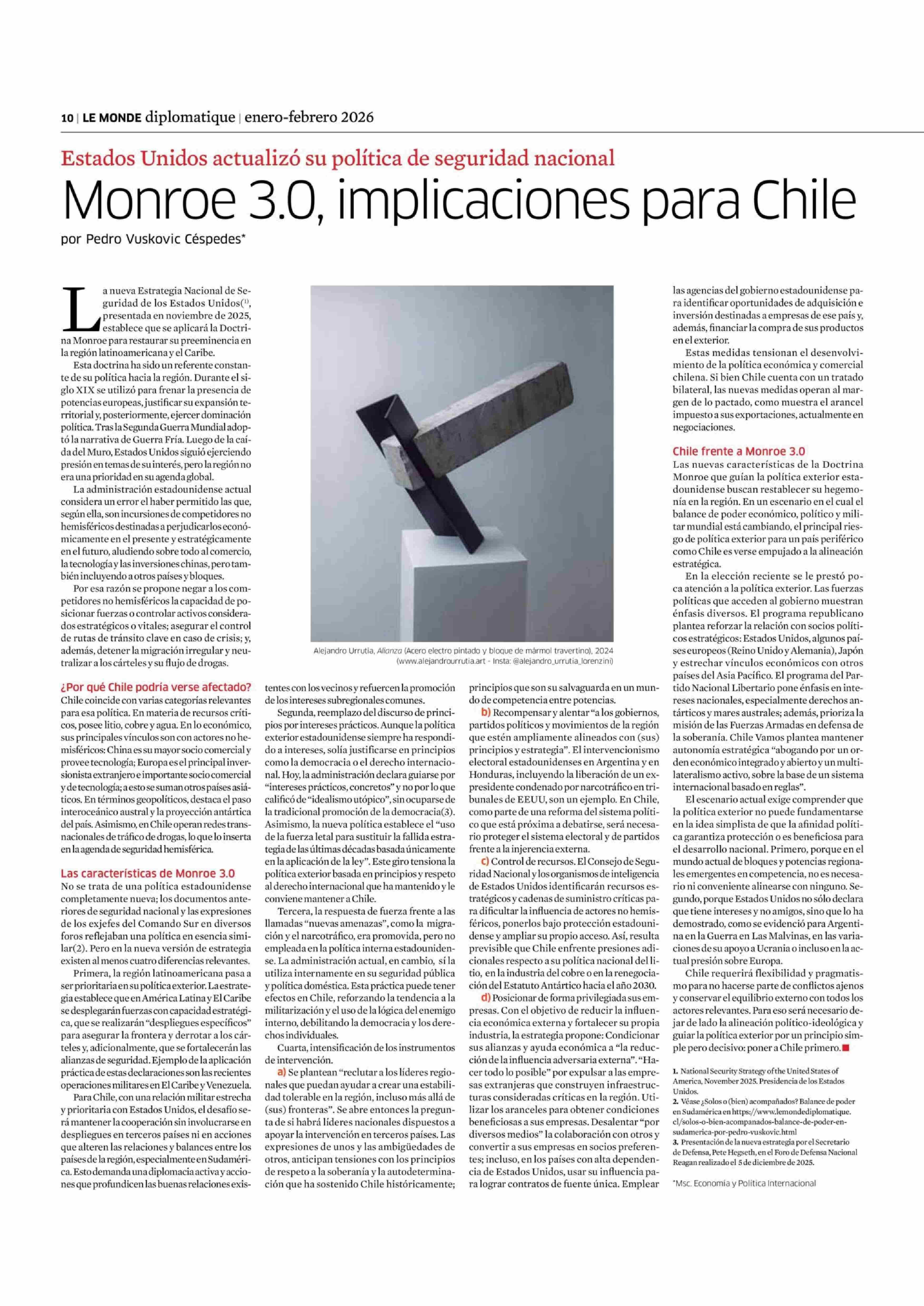 Título: COLUMNAS DE OPINIÓN: Monroe 3.0, implicaciones para Chile