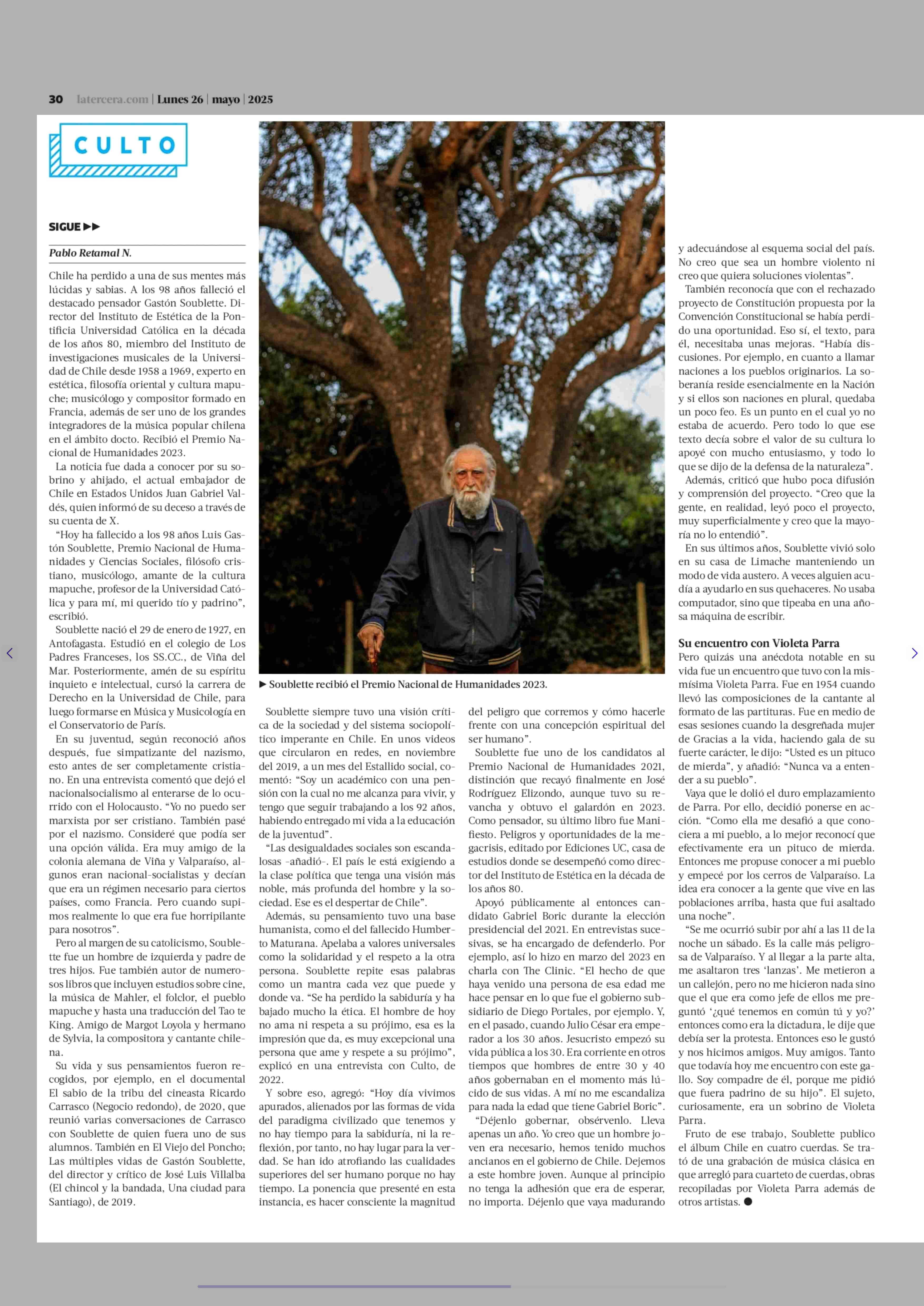 Gastón Soublette, muere el “sabio de la tribu” que penso e Chile 26-05-2025 La Tercera |
