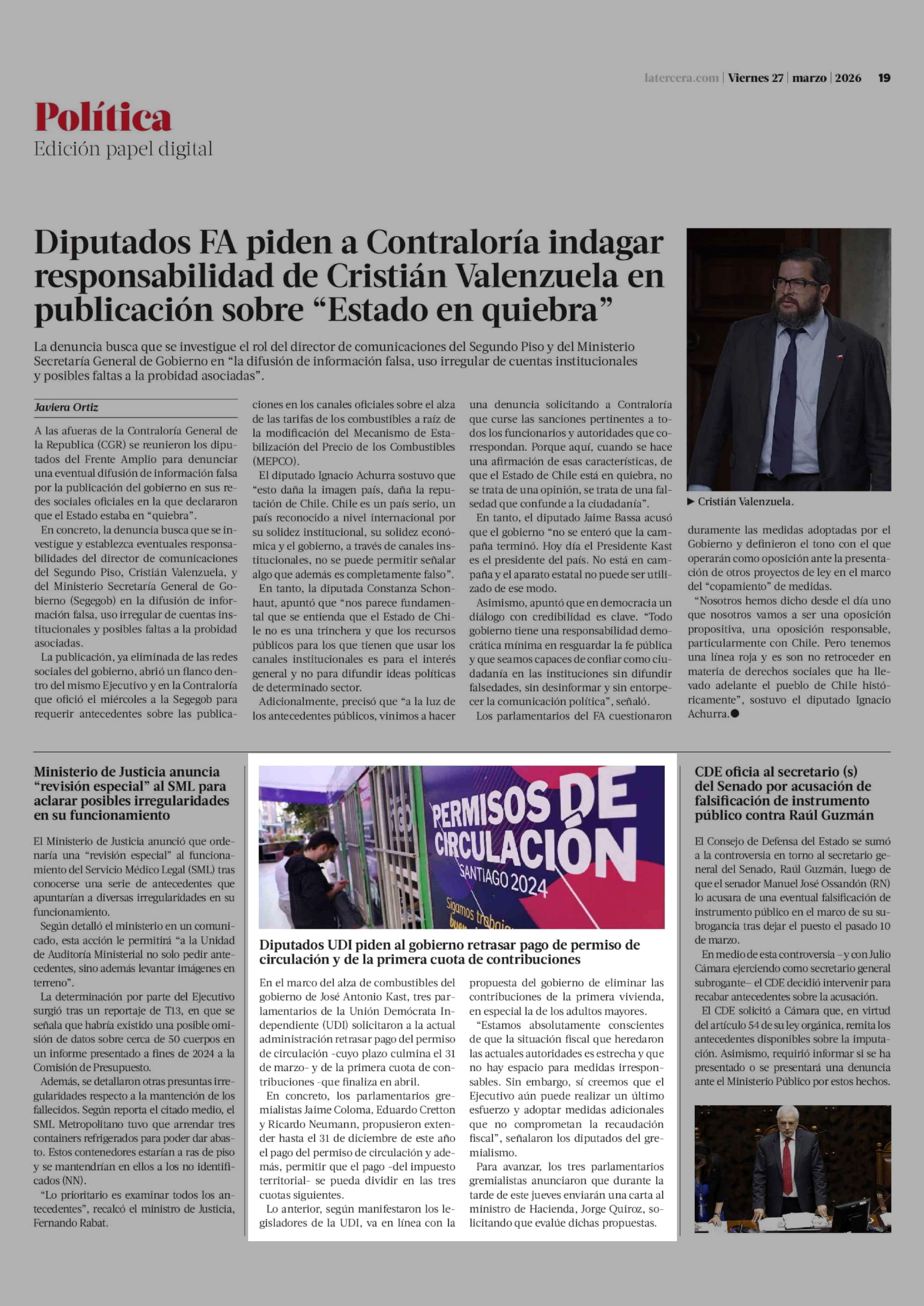Fuente: La Tercera (La Tercera) Página(s): 19