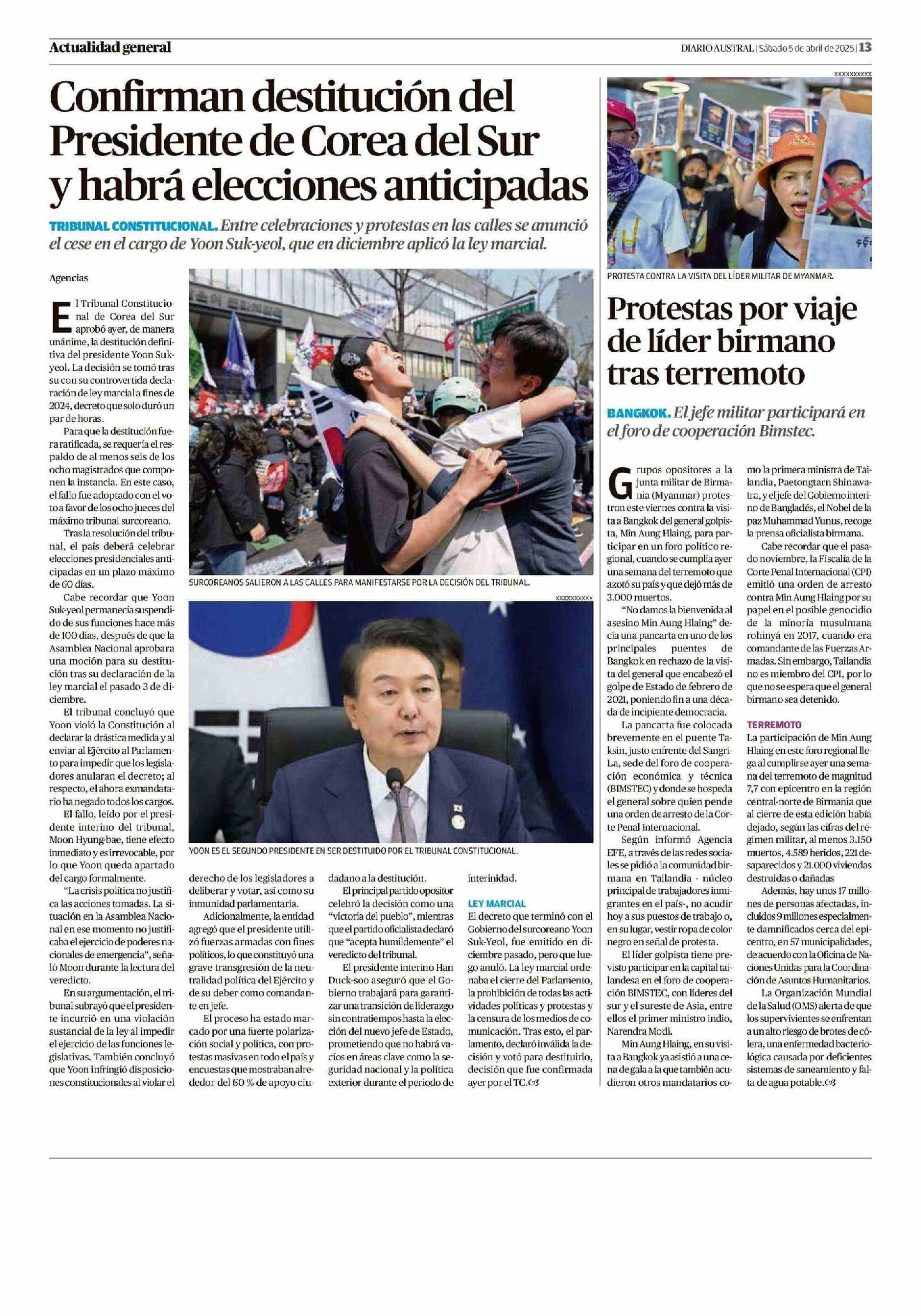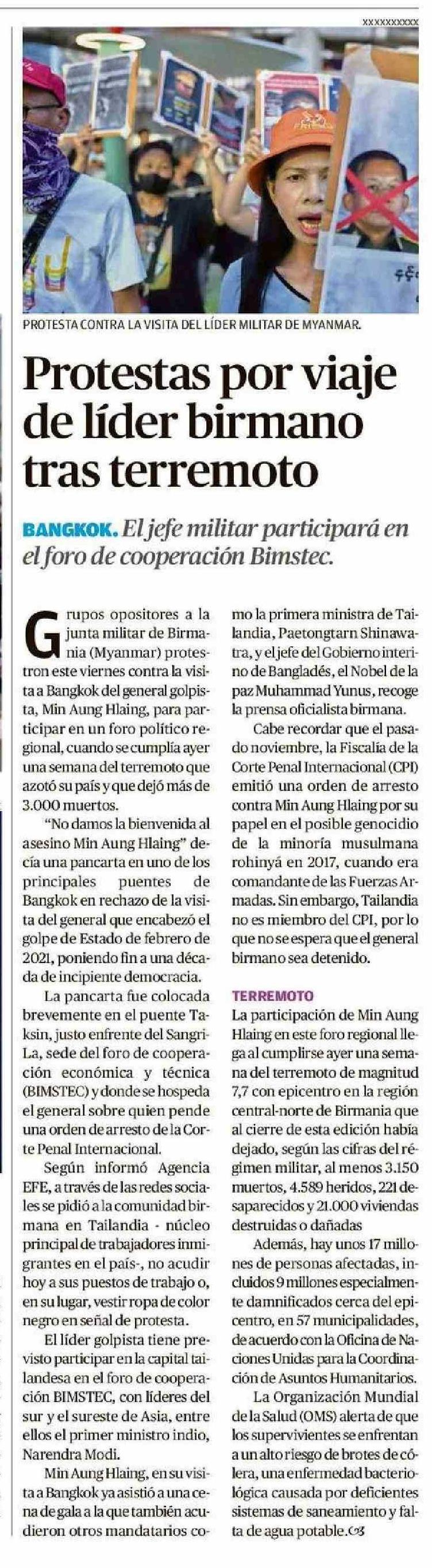 Protestas por viaje de líder birmano tras terremoto 05-04-2025 Diario Austral Región de Los Ríos |