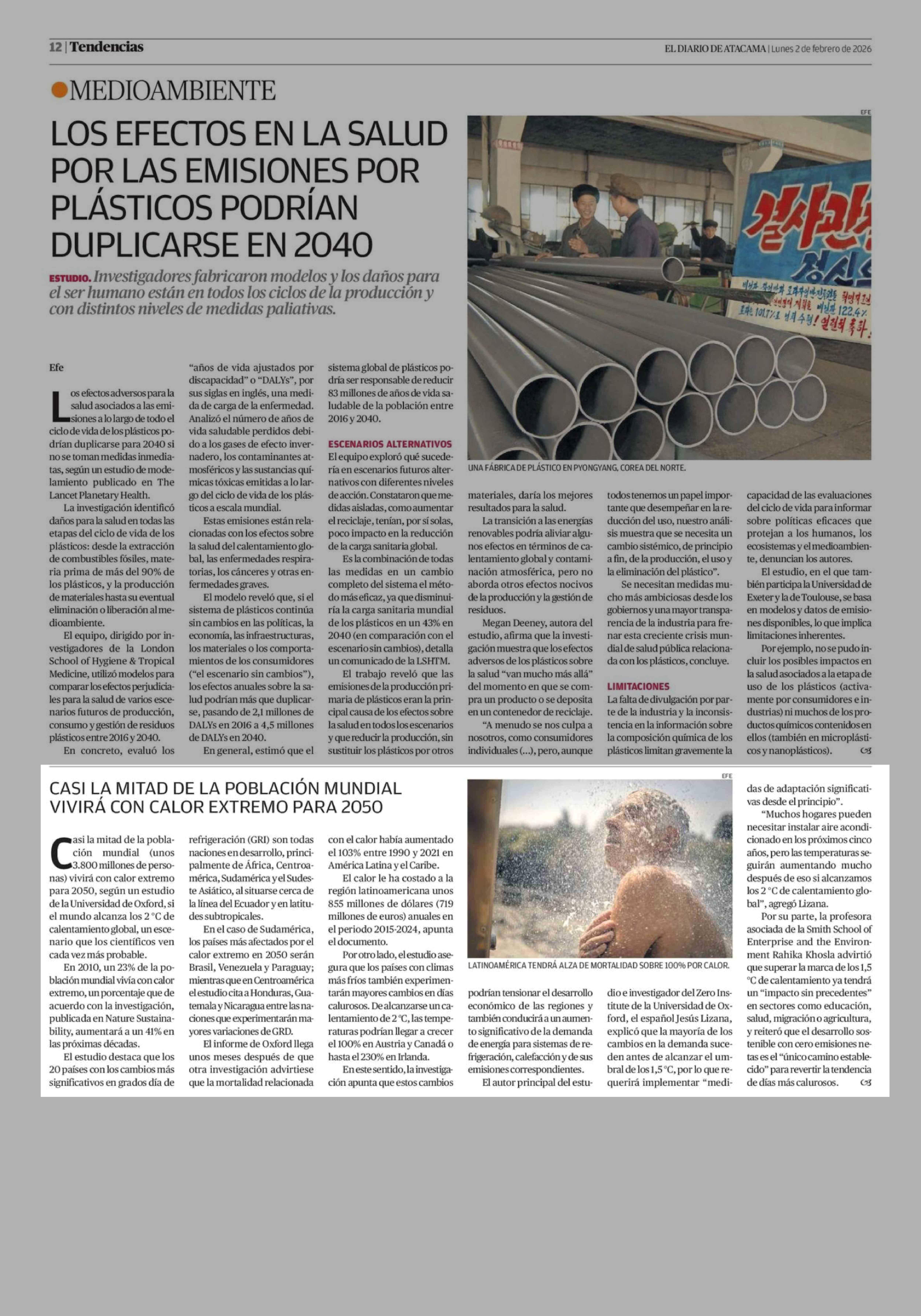 CASI LA MITAD DE LA POBLACIÓN MUNDIAL VIVIRÁ CON CALOR EXTREMO PARA 2050 02-02-2026 El Diario de Atacama |