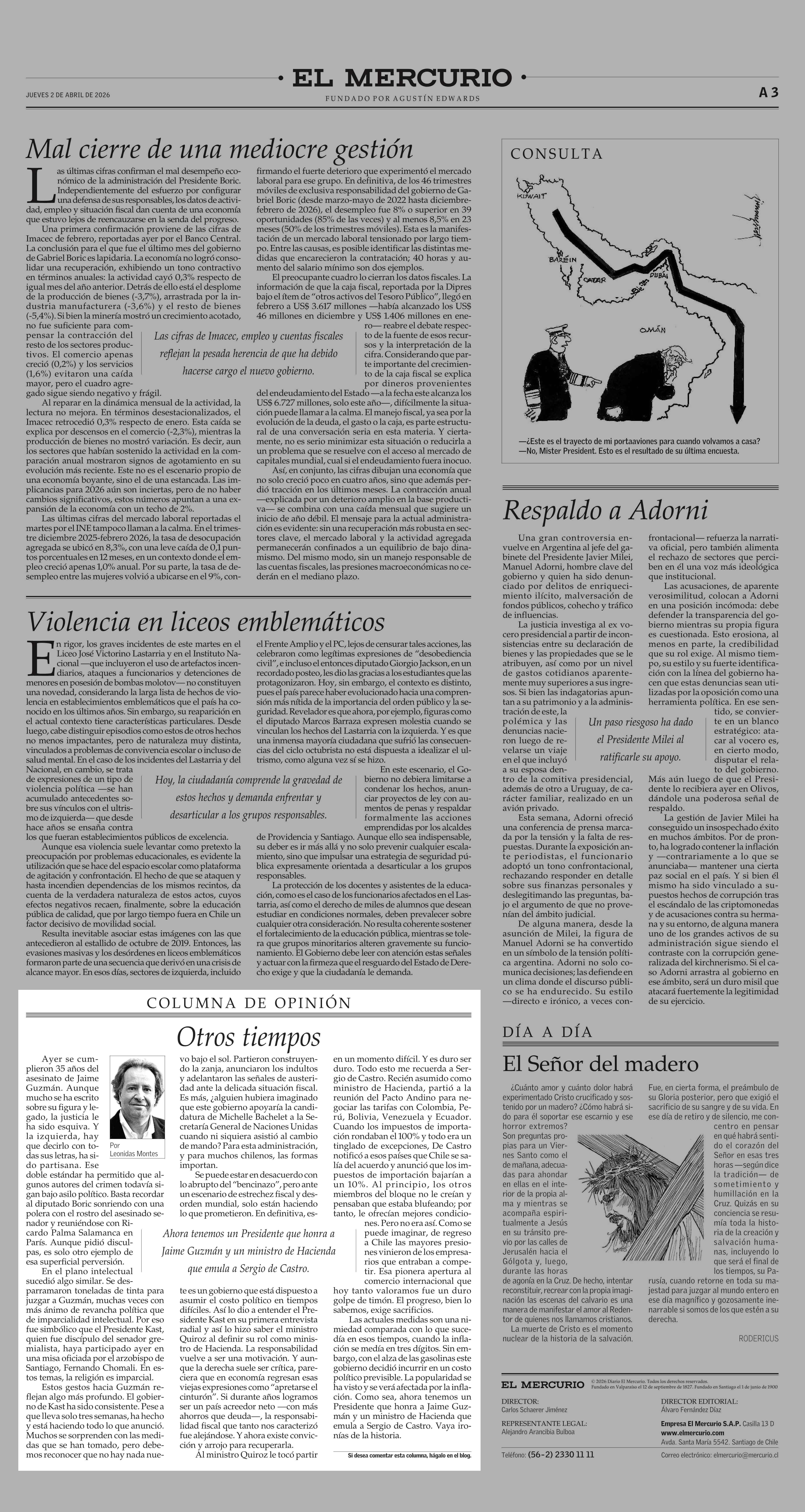 Columnas de Opinión: Otros tiempos 02-04-2026 El Mercurio |