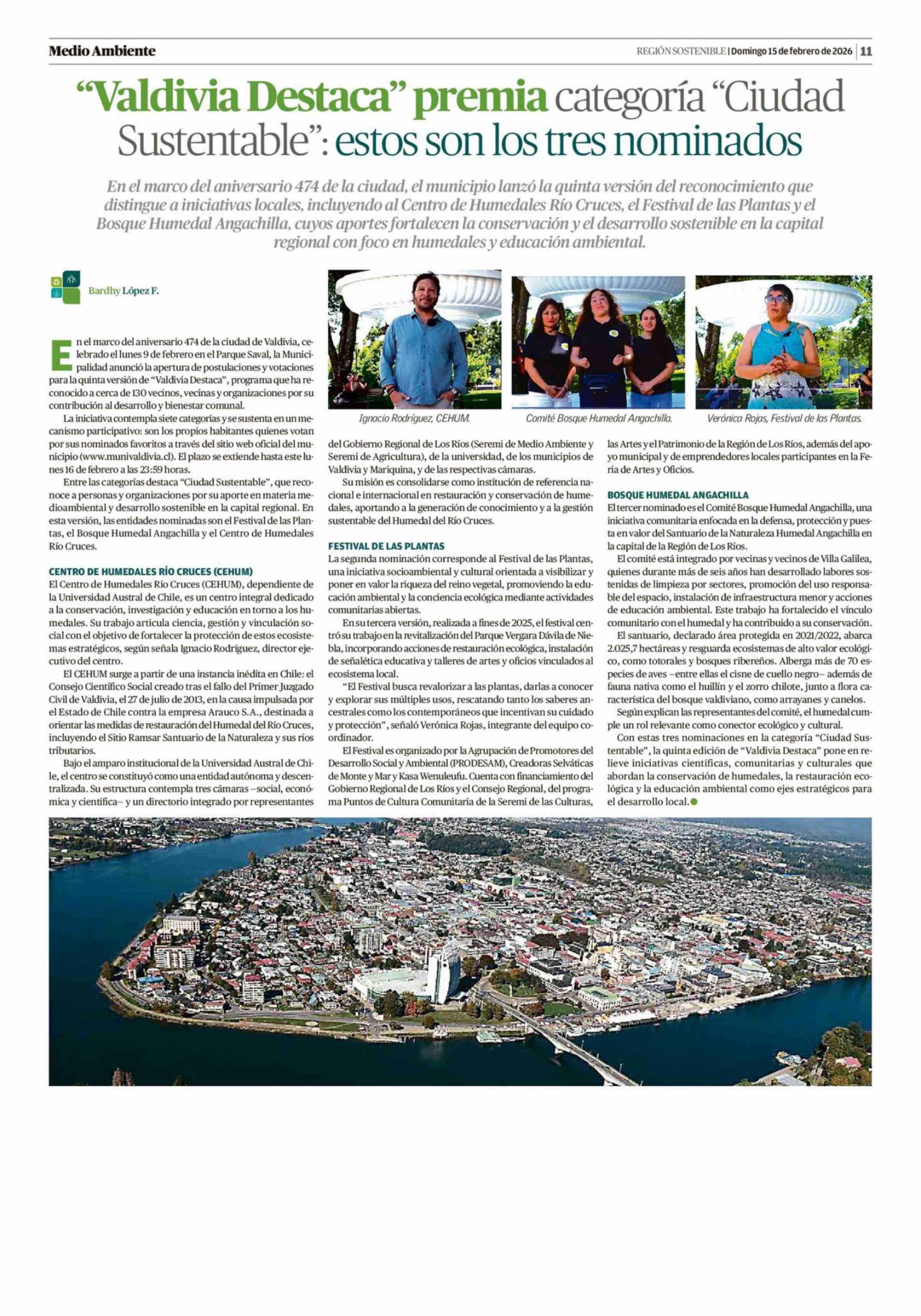 Título: "Valdivia Destaca" premia categoría "Ciudad Sustentable": estos son los tres nominados